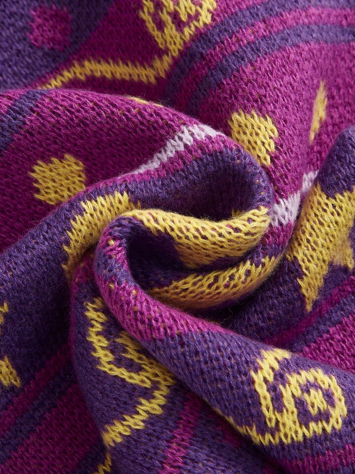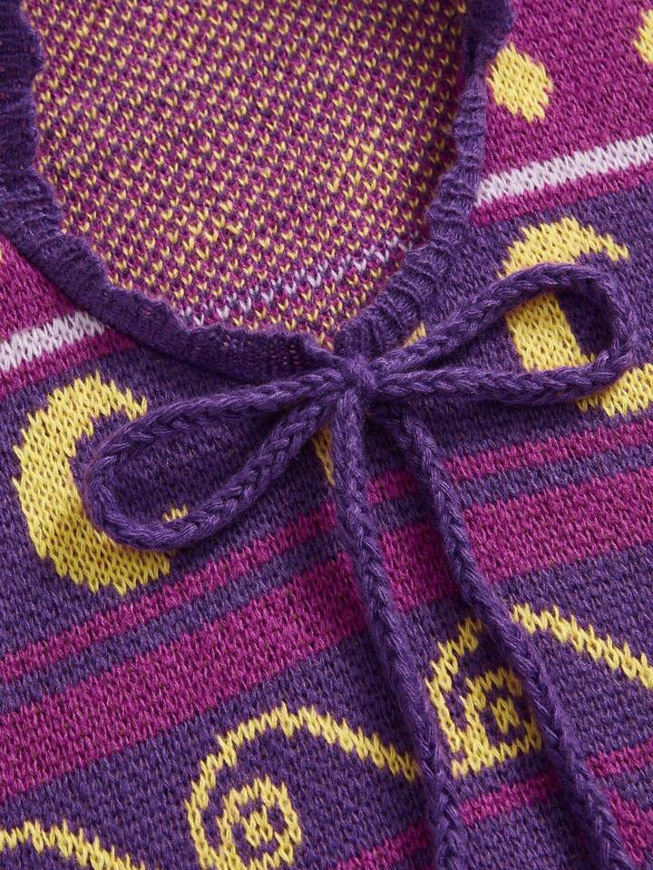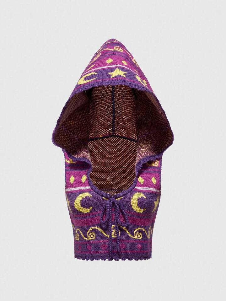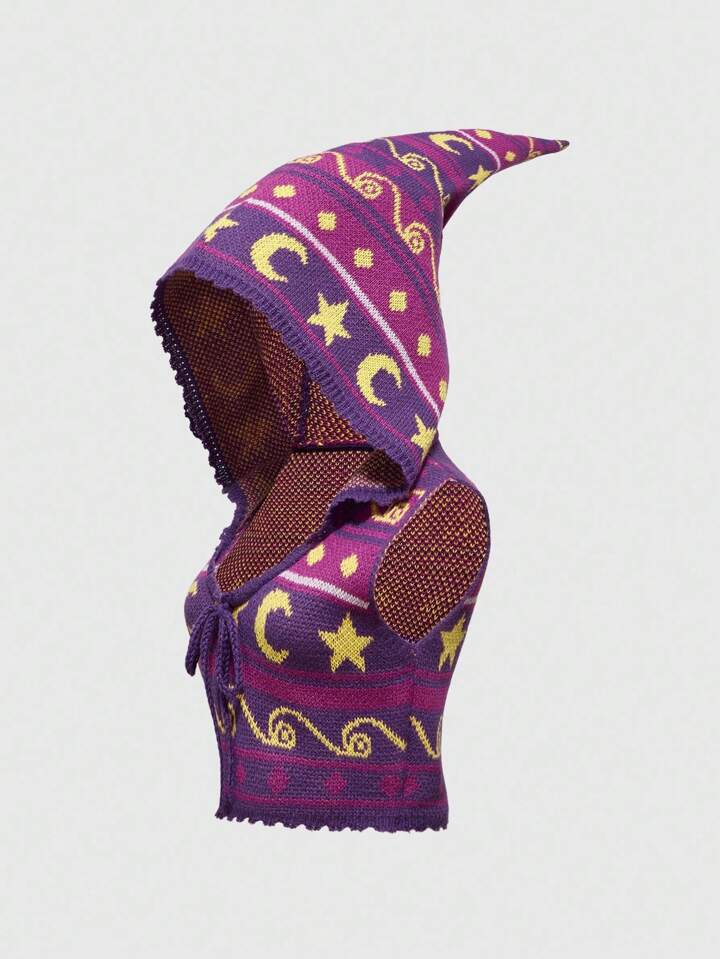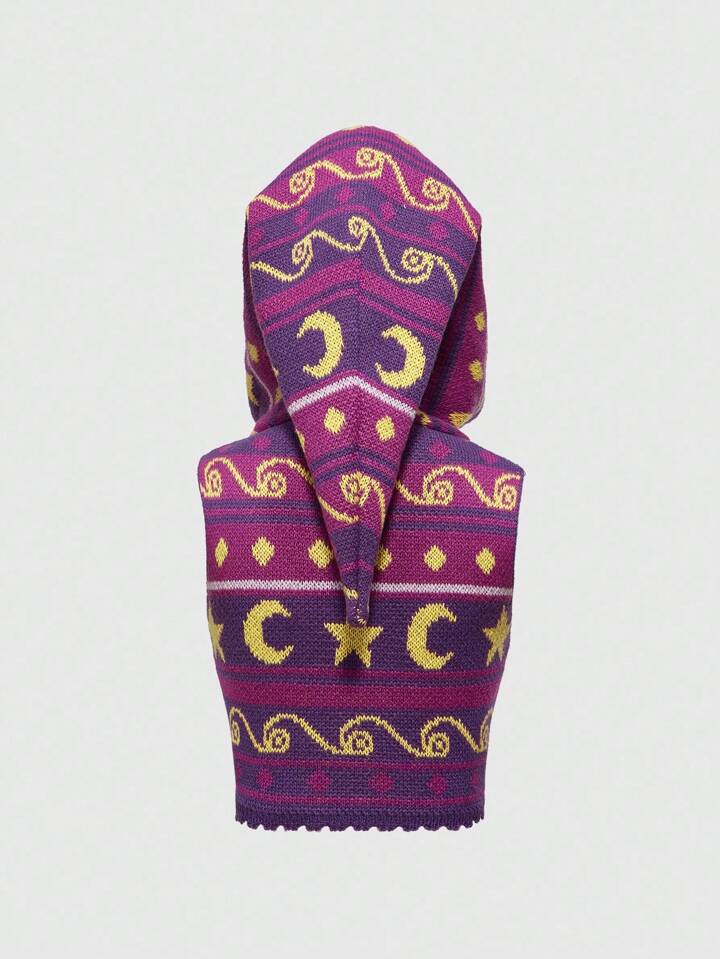 Top a maglia senza maniche con paillettes, a righe, con motivo a hippie e strega in stile retrò, motivo Hed