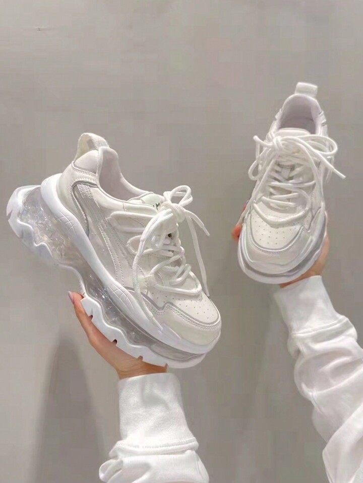 Sneakers Trasparenti Con Zeppa E Suola Spessa Con Lacci In Stile Studentesco Da Donna, Perfetti Per L'autunno E L'inverno