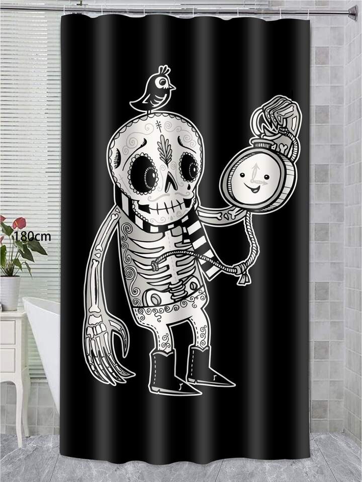 Wotto scheletro & Orologio a cipolla stampa Tende da doccia