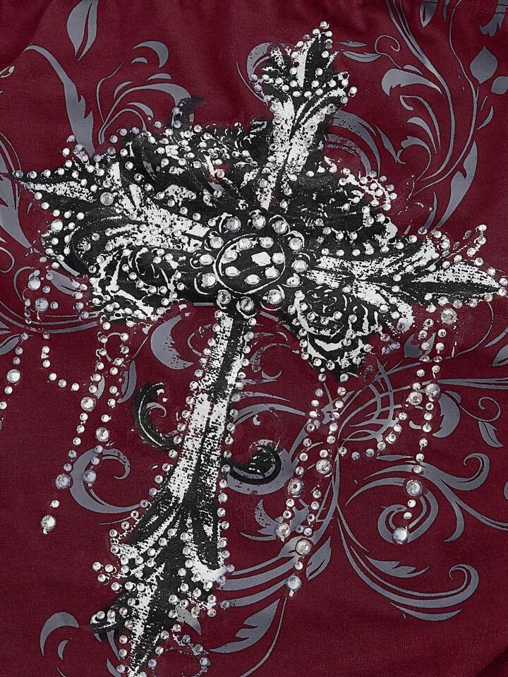Canotta da donna con stampa a croce e decorazione di strass in stile Y2K