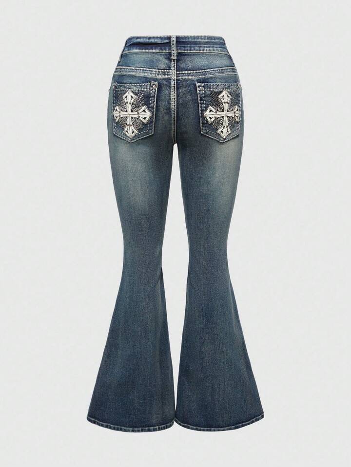 Jeans a zampa con ricamo della bandiera americana in stile retrò Y2K per donna