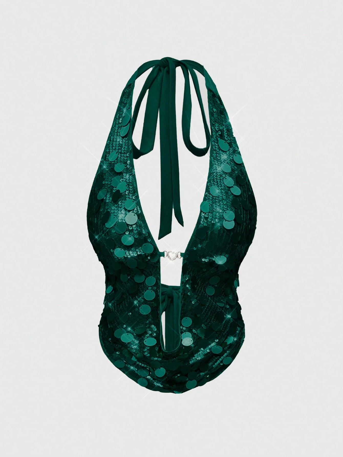 Top corto con scollo drappeggiato e perline in stile retrò Y2K per donne