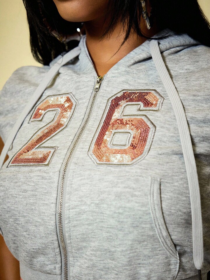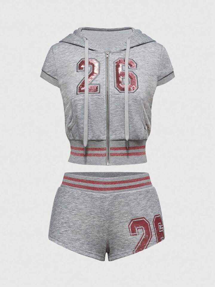 Completo di micro top corto a maniche corte con ricamo di perline numeriche e minigonna a vita ultra bassa, in stile Y2K sexy