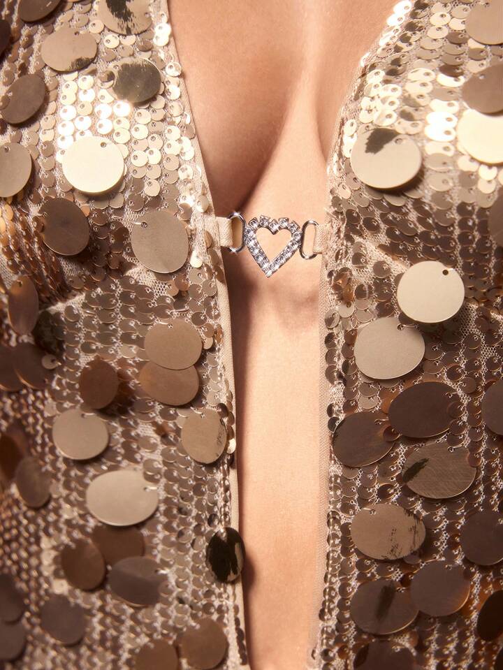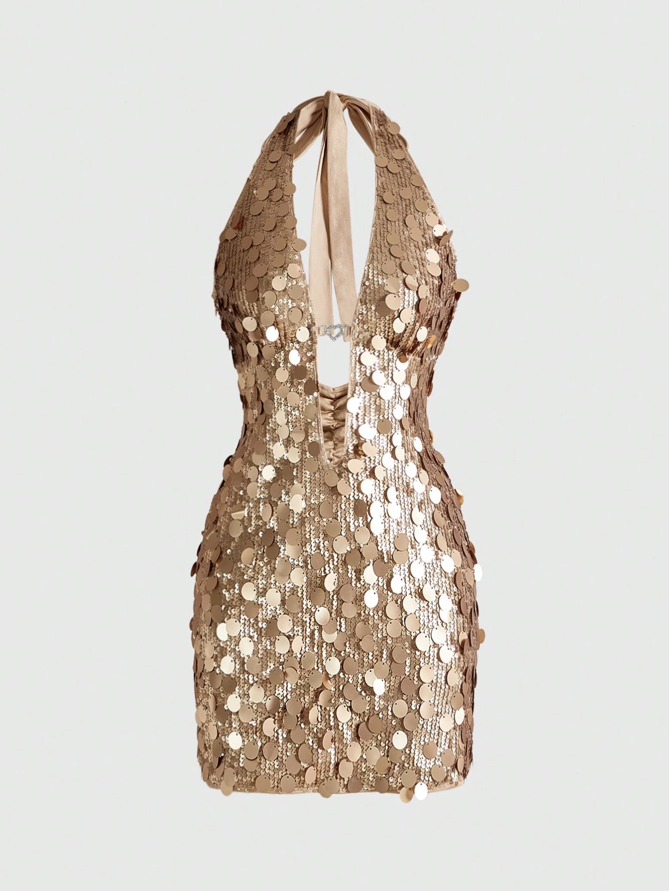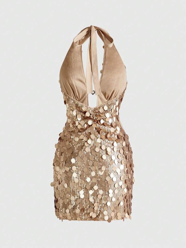 Abito mini aderente da donna con schiena scoperta, collo alto e perline, in stile Y2K