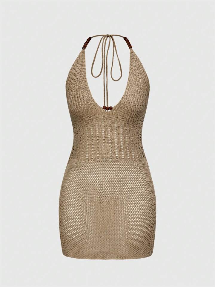 Abito da donna in stile Y2K, con collo ad aletta, in materiale a maglia traforata, sexy, corto, adatto per vacanze