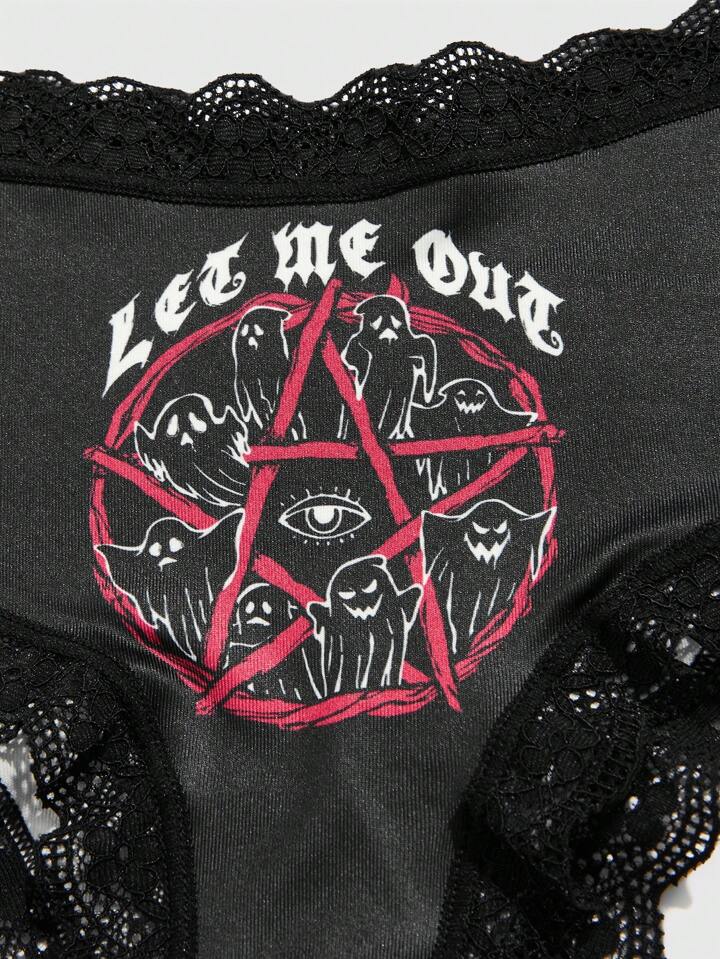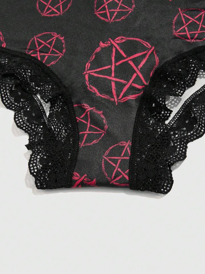 annaeshka 3 pacchi Set mutandine con grafica fumetto pizzo a contrasto