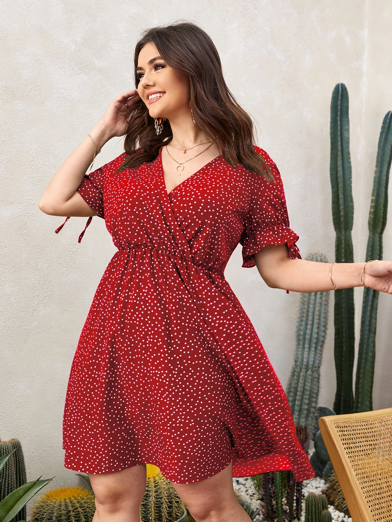 Vestido cruzado delantero de lunares sin cinturón