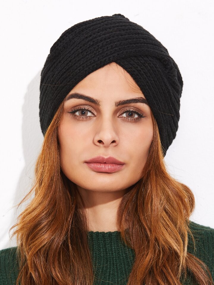 Black Ribbed Knit Turban Hat