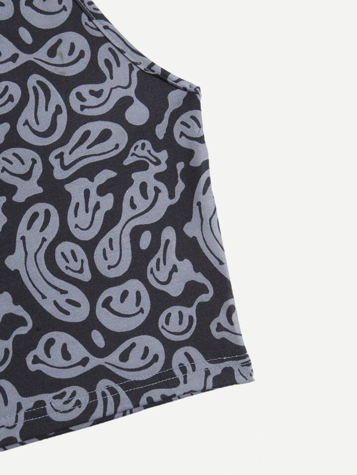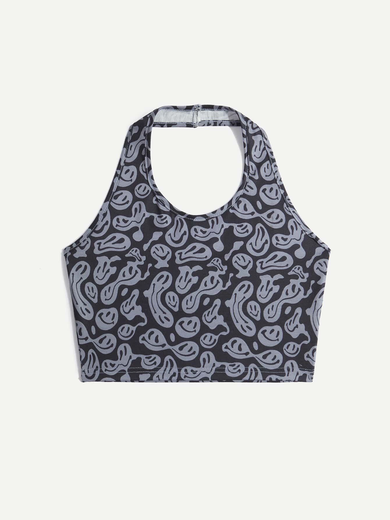 Graphic Crop Halter Top