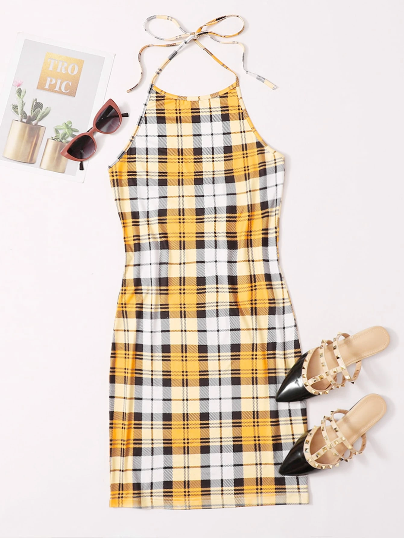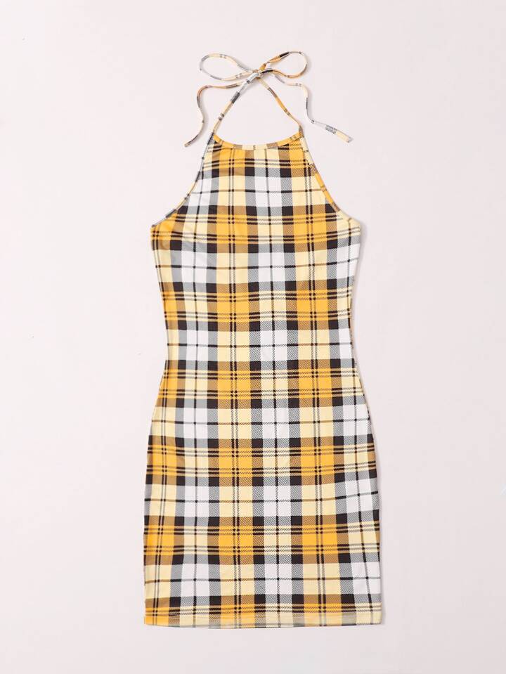 Plaid Halter Dress