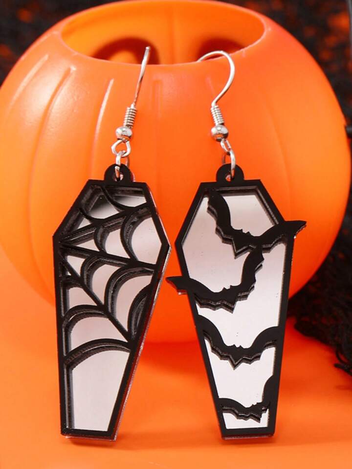 1 Pair Fashionable Vintage Gothic Punk Personalized Dark Style Hollow Bat & Spider Web Earrings