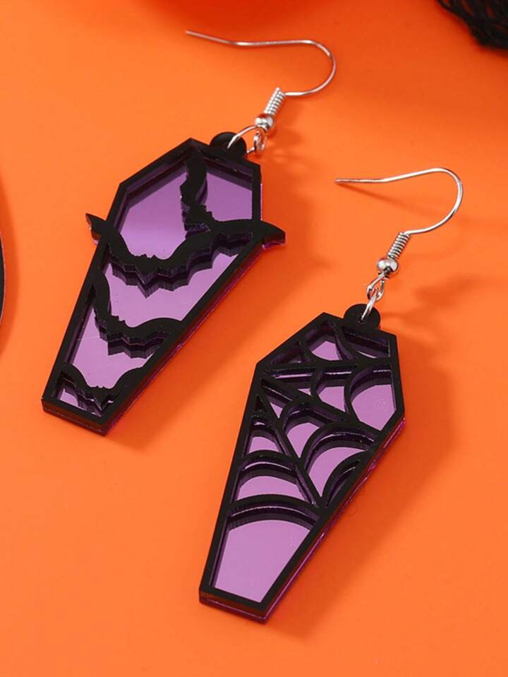 1 Pair Retro Halloween Gothic Punk Hollow Bat & Spider Web Earrings