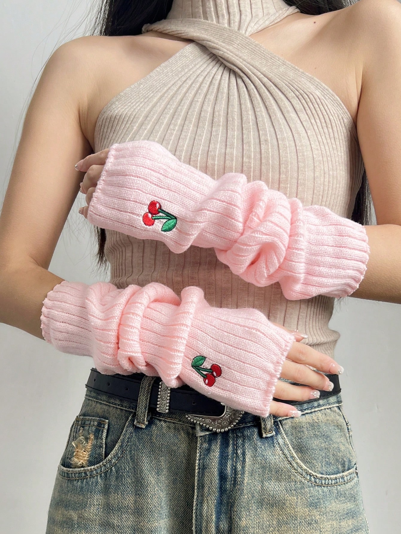 1 Pair Women Sweet Cute Arm Sleeves, Embroidered Cherry Kawaii Sleeves