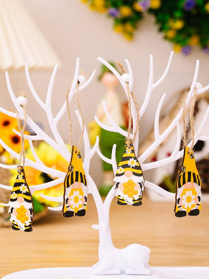 12pcs/set WPC Wall Hanging, Cartoon Gnome Design Flower Pattern Hanging Decoration For Home