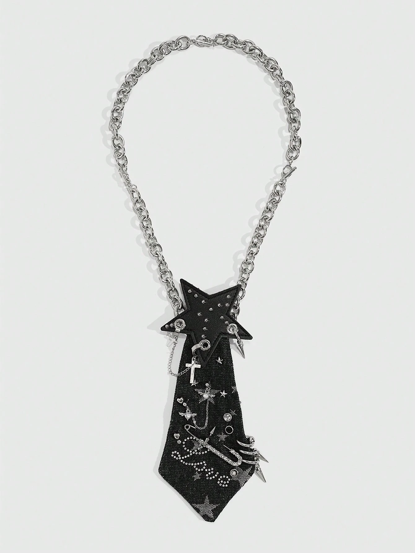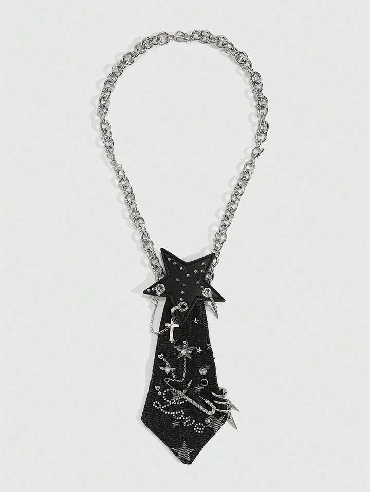 1Pc Punk Style Star Ladies' Shirt Accessory,Piercing Rivet PU Star Decorative Tie, No-Tied Necktie, College Style Music Festival Accessory
