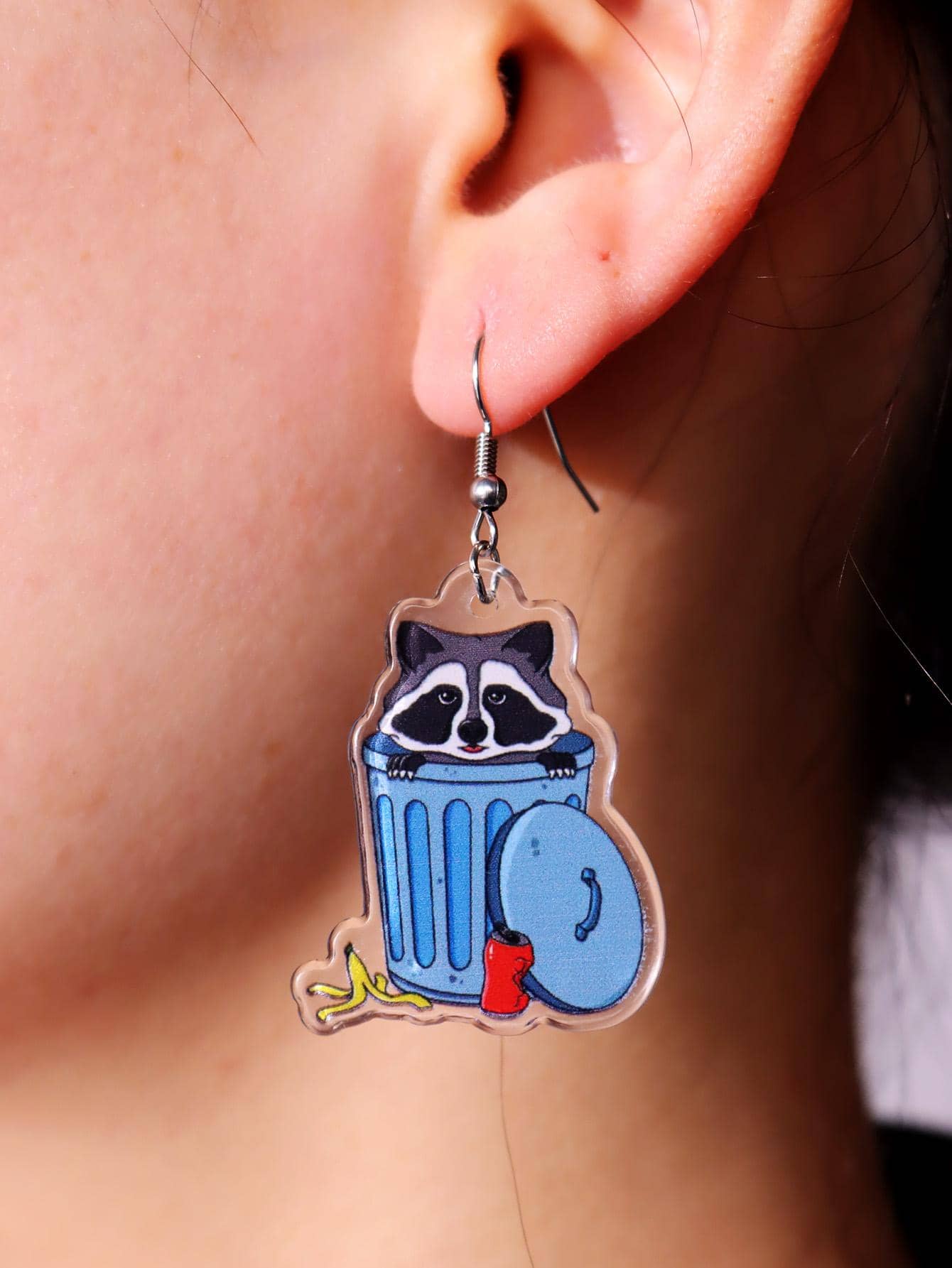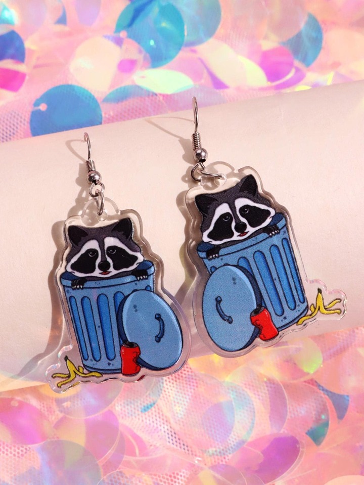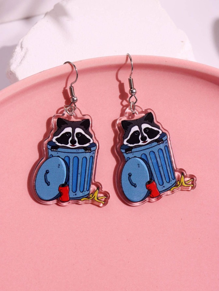 1pair Fashion Cat & Trash Can Drop Earrings For Women For Daily Decoration