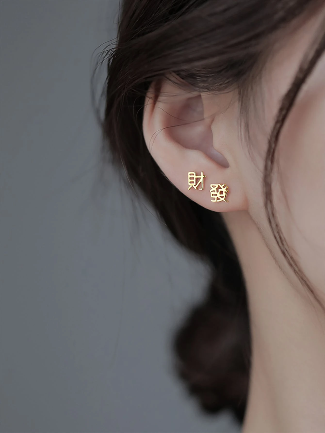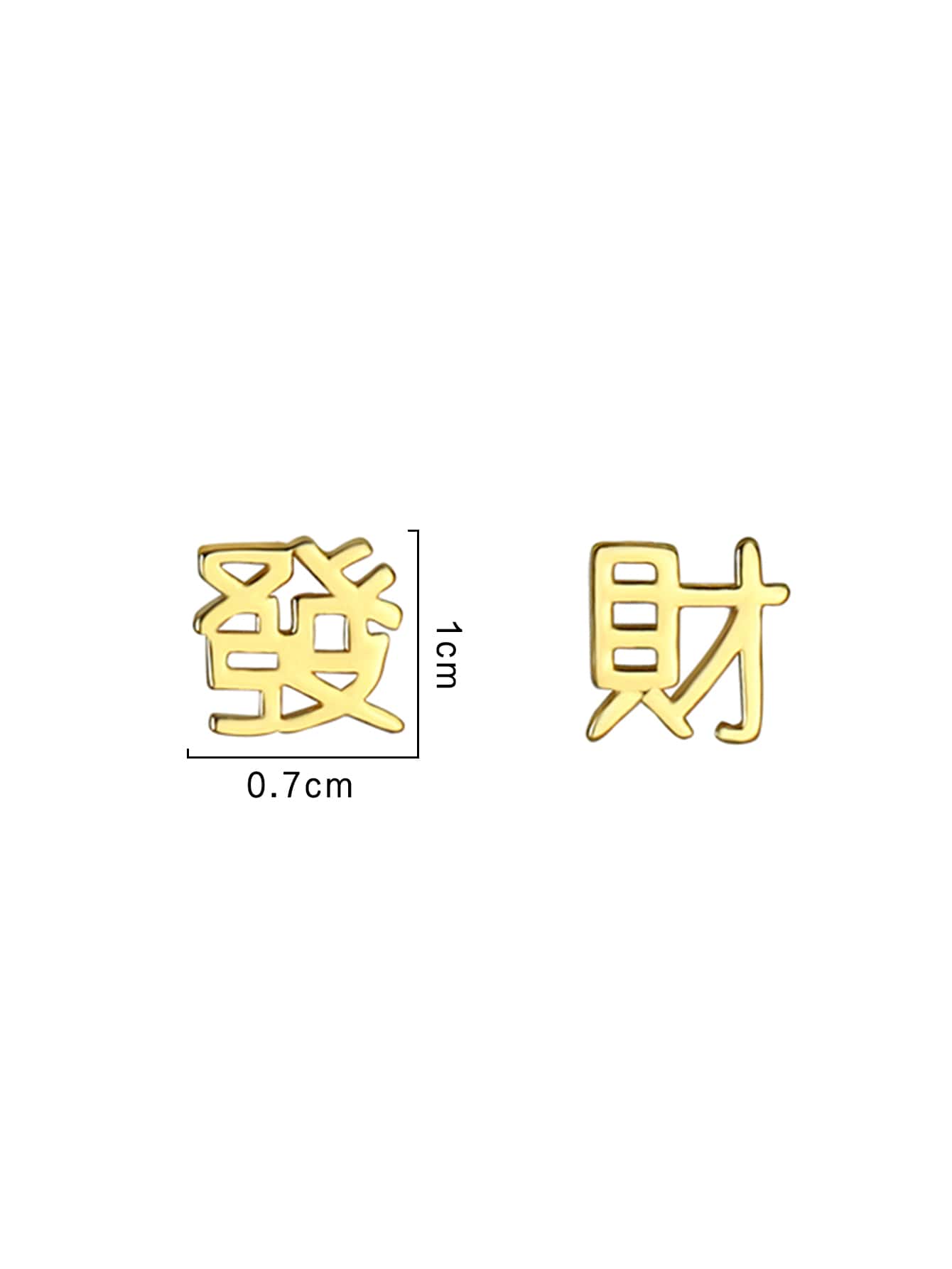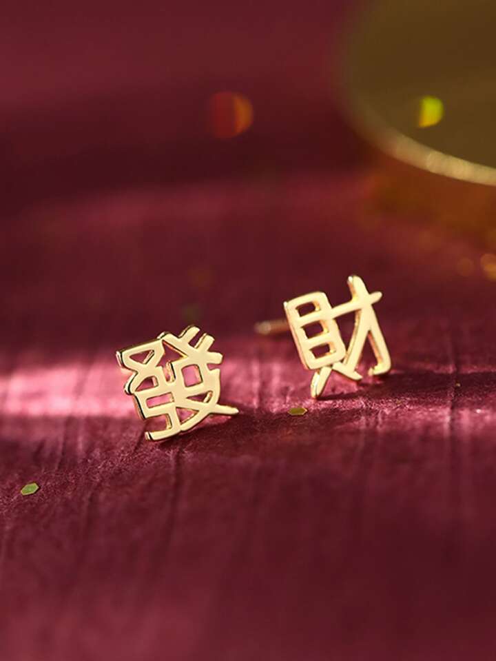 1pair Funky Copper Chinese Character Stud Earring For Women For Daily Decoration, New Year Gift