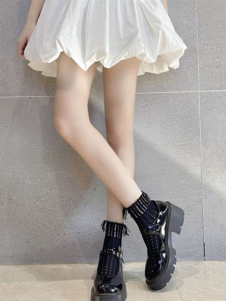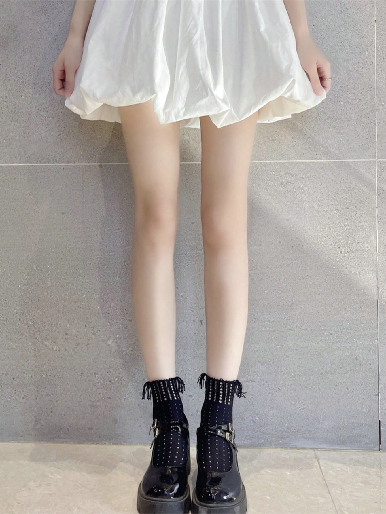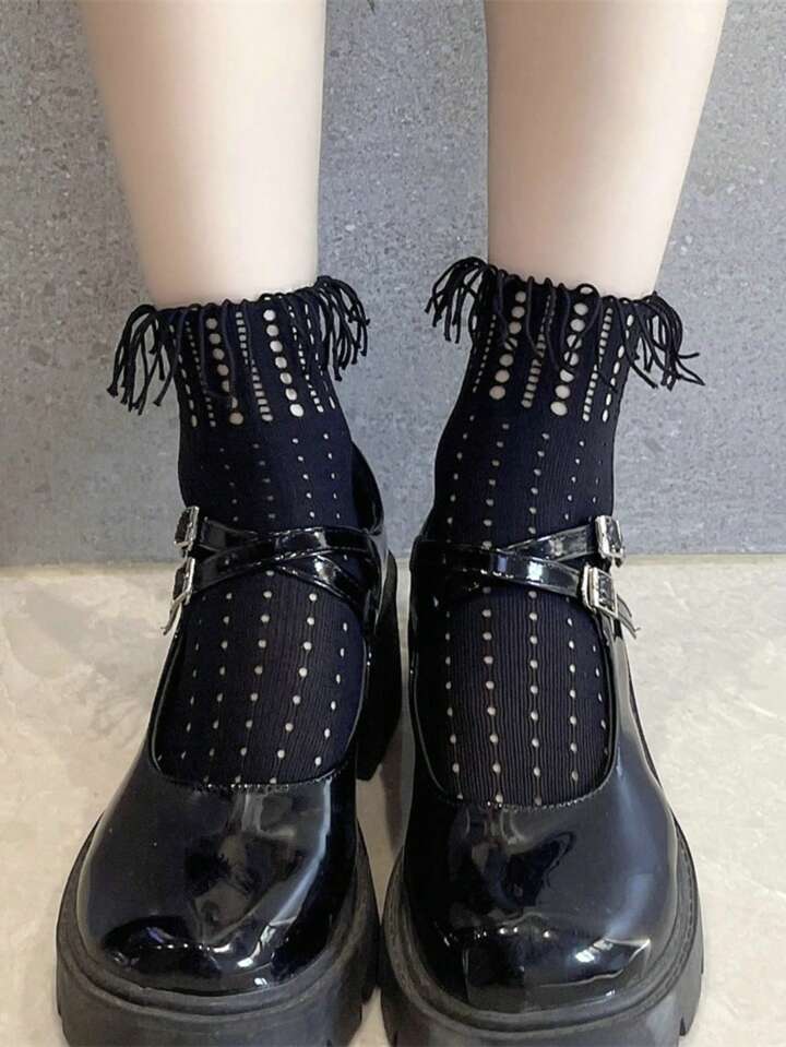1pair Women Hollow Out Fringe Decor Fashionable Tights For Daily Life