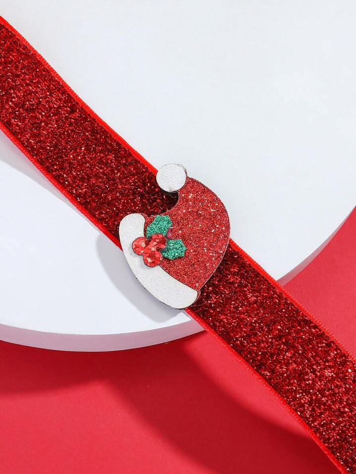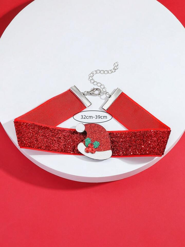 1pc Christmas Cartoon Cute Sparkling Santa Hat Satin Ribbon Necklace