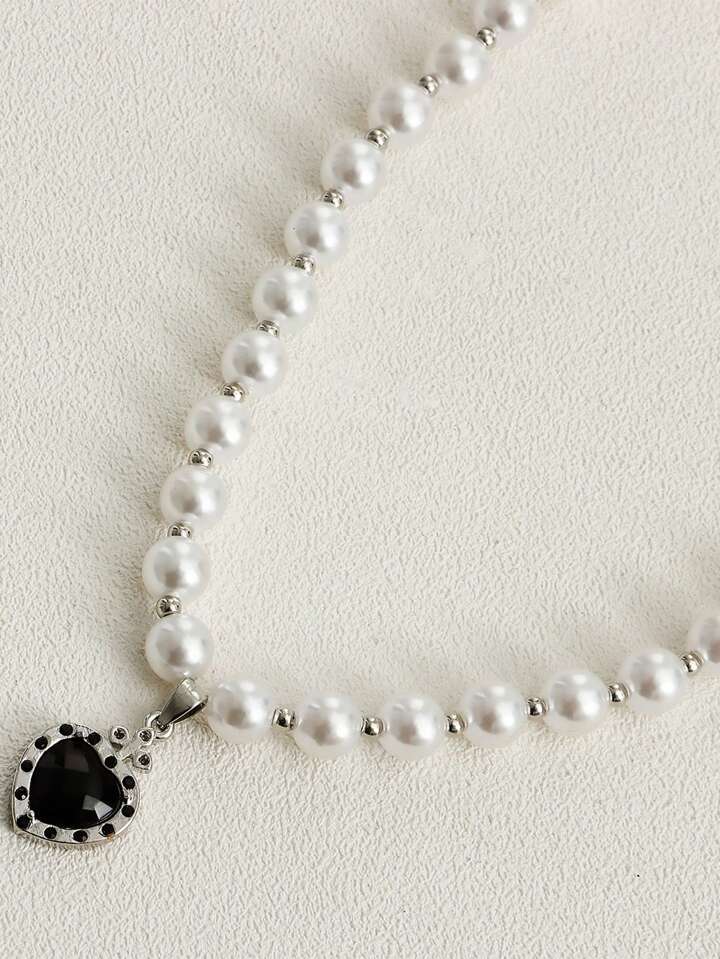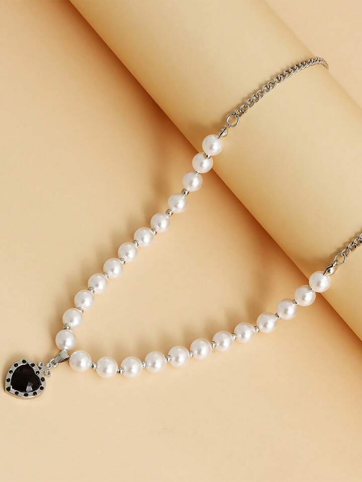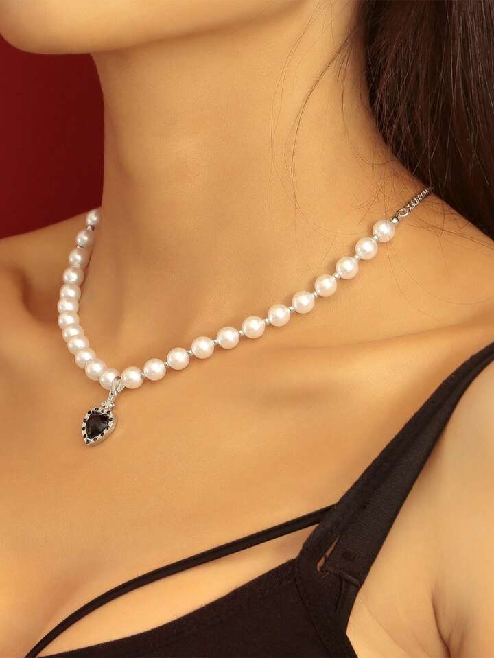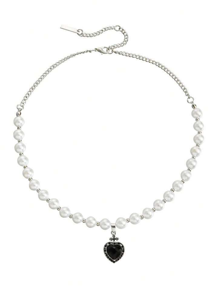 1pc Fashion Iron Alloy Heart Charm Faux Pearl Beaded Necklace For Women For Daily Decoration