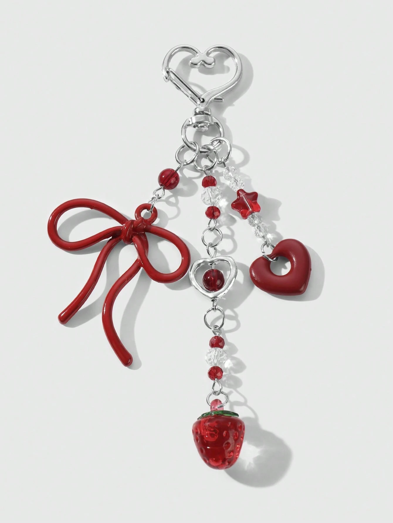 Kawaii 1pc Fashionable, High-Quality Red Faux Crystal Fish, Heart, Bowknot, Strawberry Resin DIY Keychain/Bag Charm, Suitable For Women/Girls, Daily Wear Or Gift