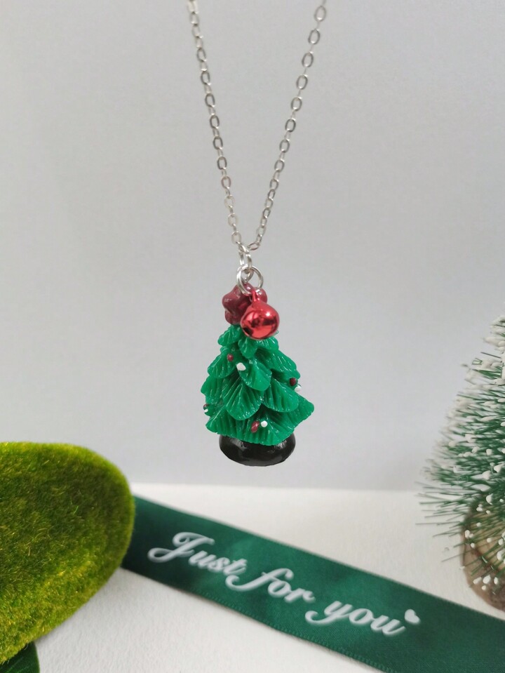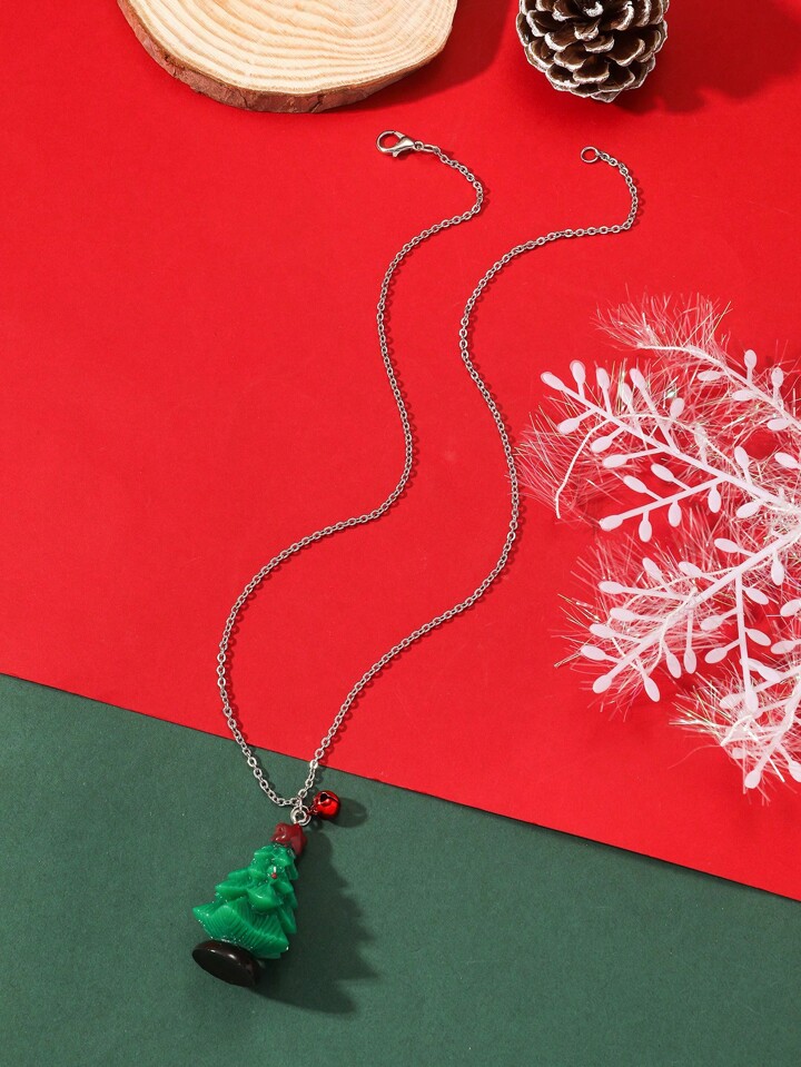 1pc Fashionable Bell Christmas Tree Pendant Necklace