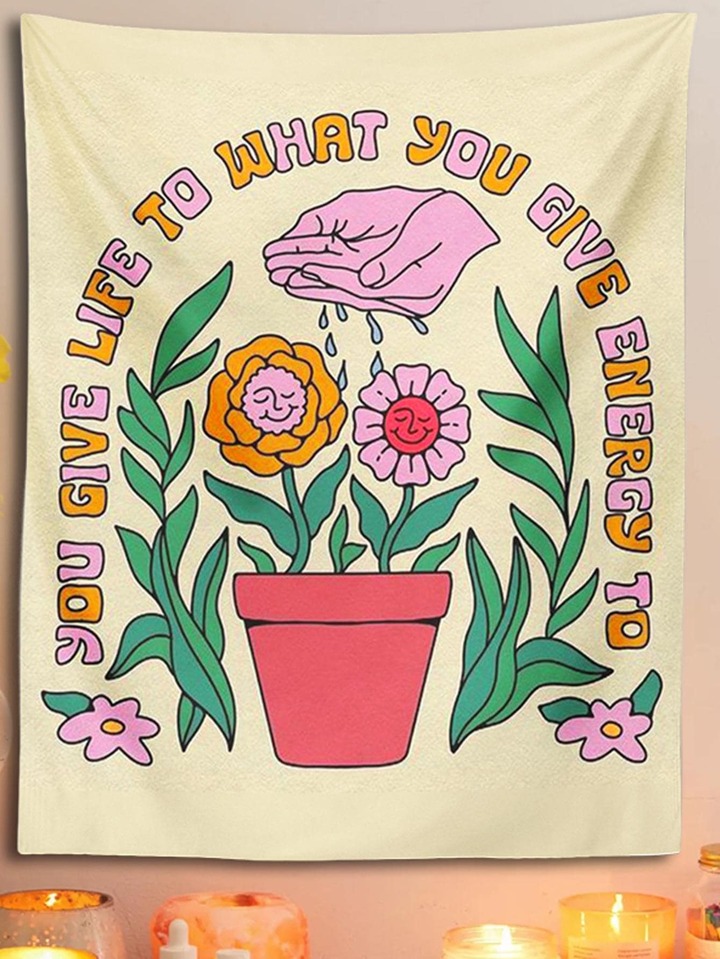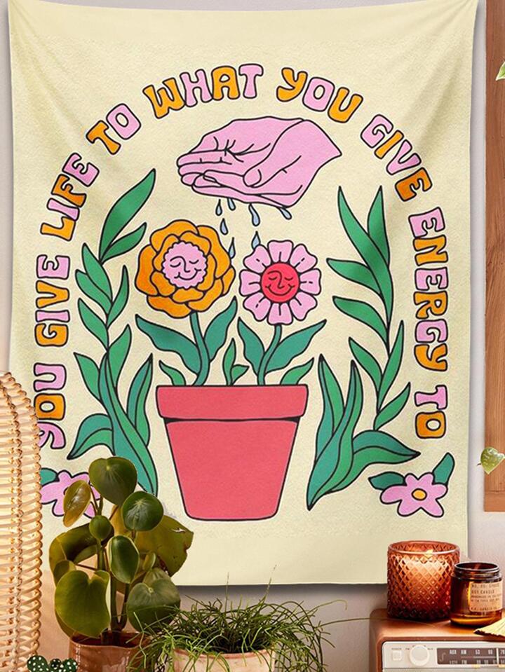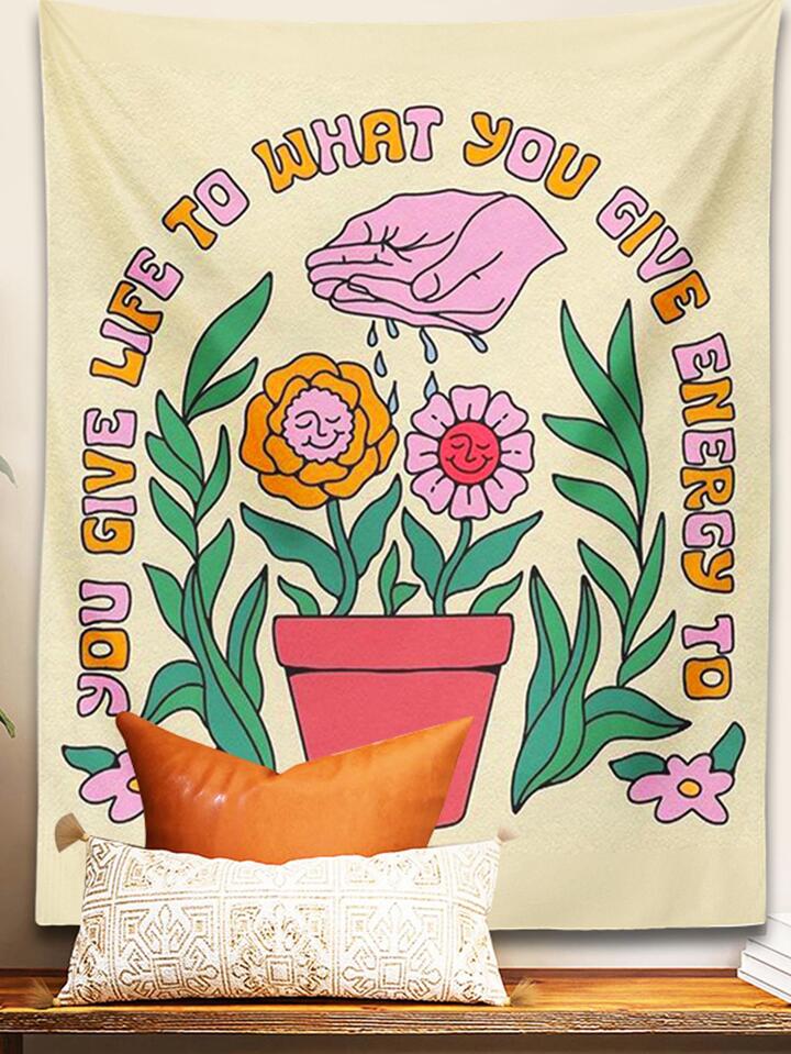 1pc Floral & Slogan Graphic Tapestry, Colorful Creative Soft Wall Blanket For Home Decor