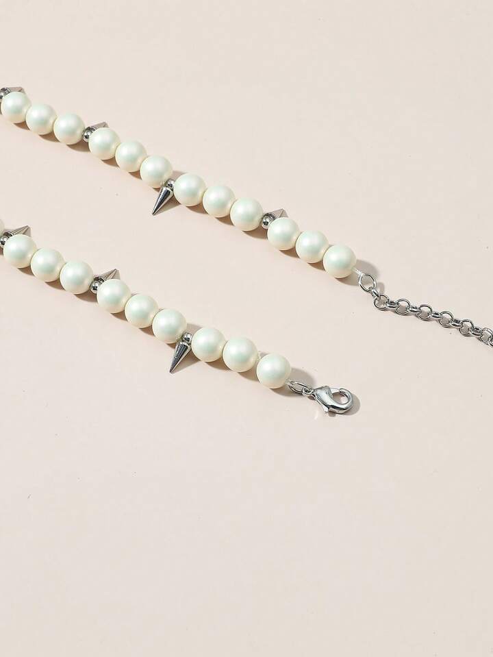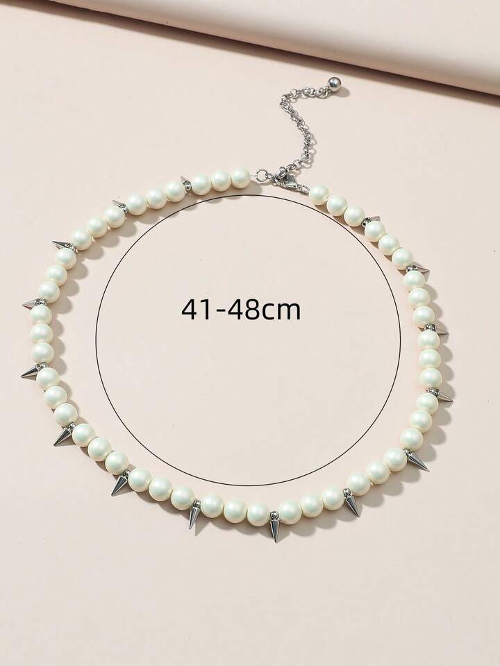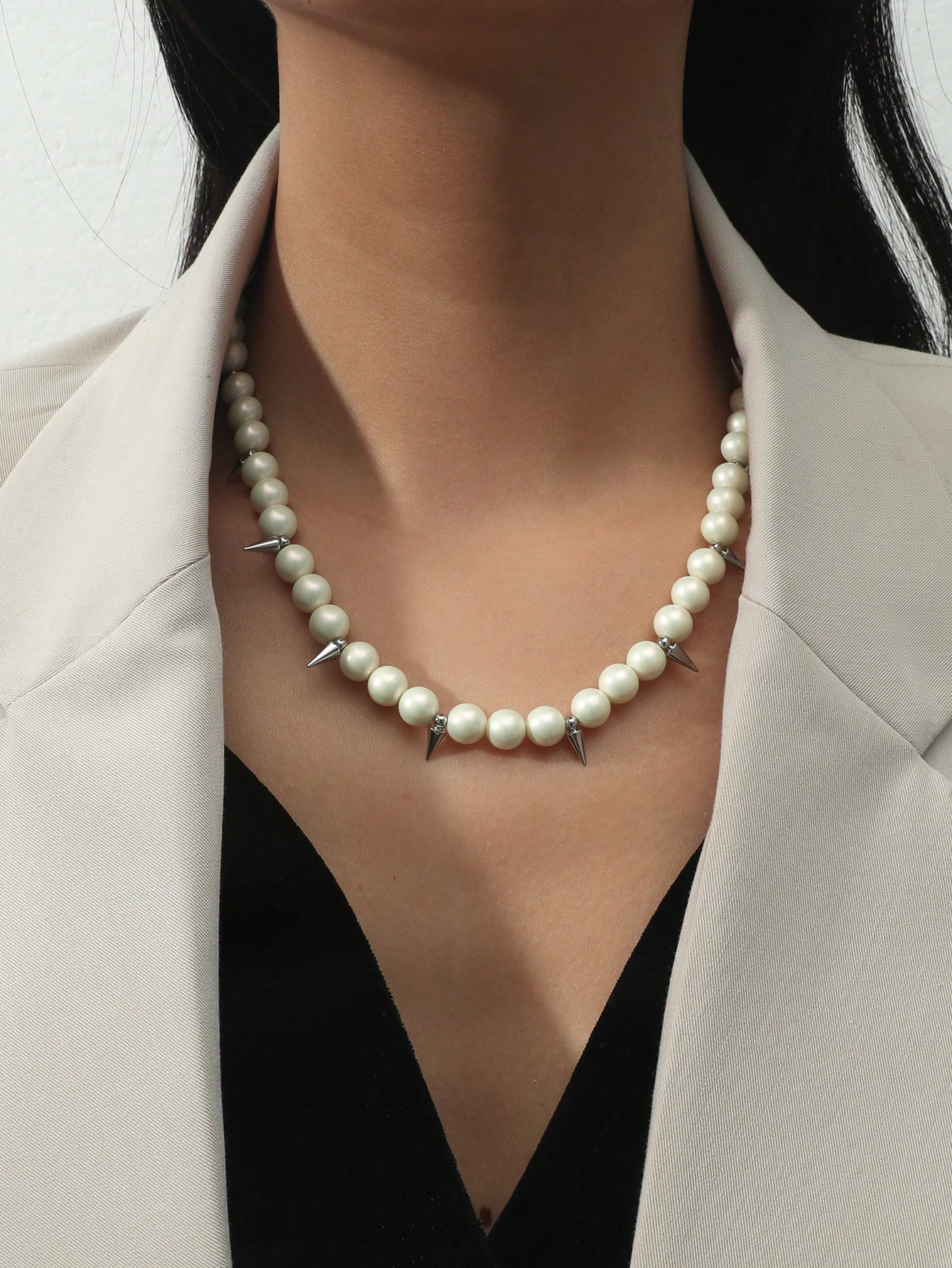 1pc Funky Faux Pearls & Spiked Decor Beaded Necklace For Women For Daily Decoration