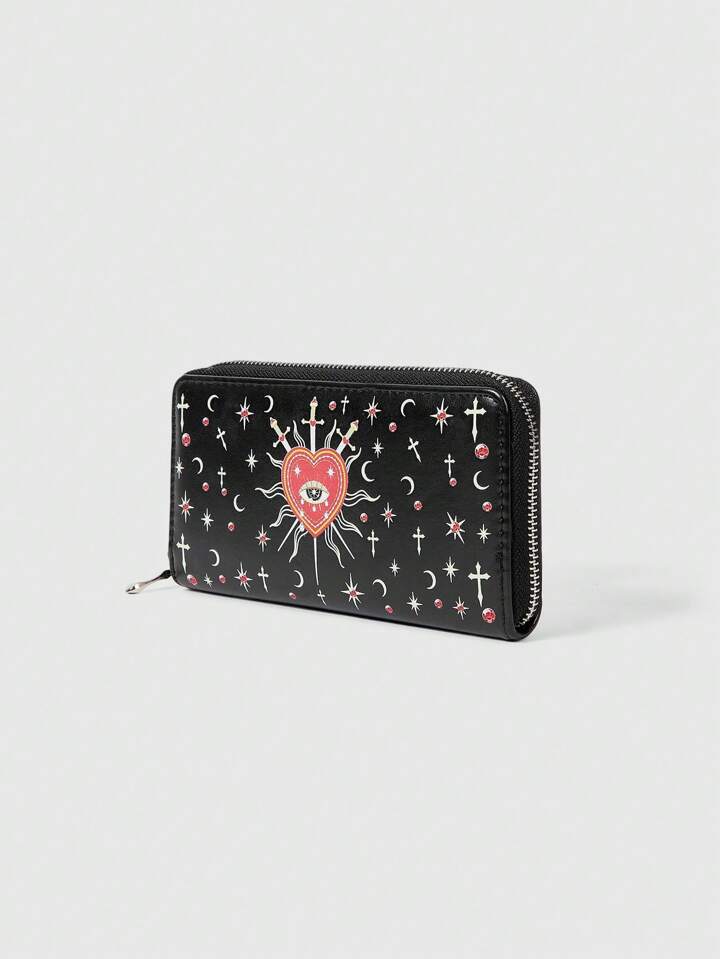 1pc Goth Spring Summer Long Wallet For Women Palace Gothic Girl Forest Love Eyes Gem Crystal Teardrop Water Drop Eyes Star Pattern Black Purse For Daily Use Back To School