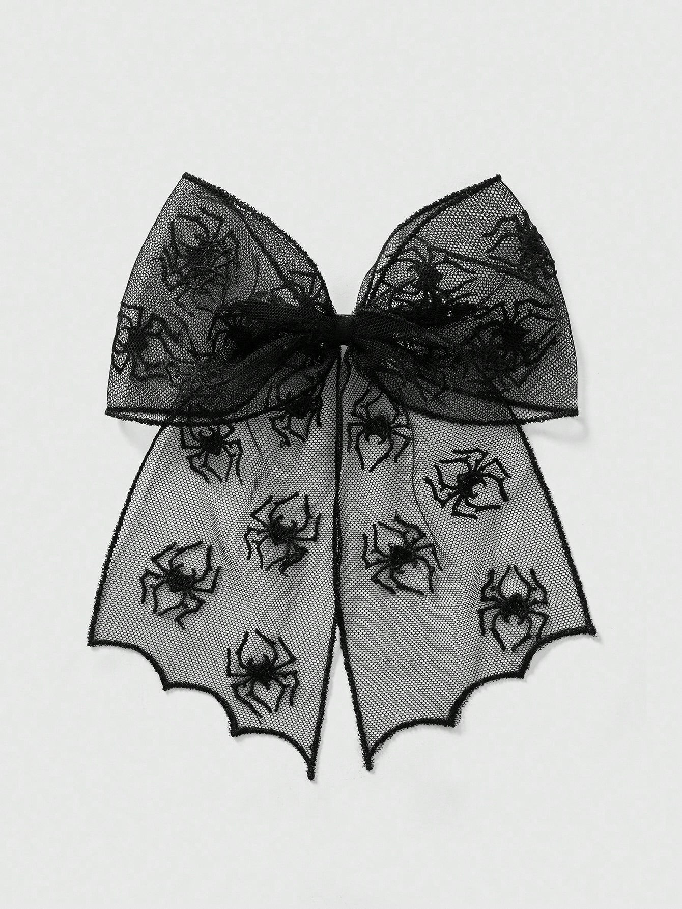 Goth 1pc Gothic Lace Spider & Bow Decorative Hair Clip For Women, Halloween