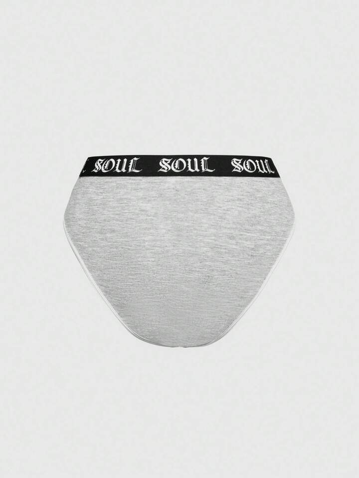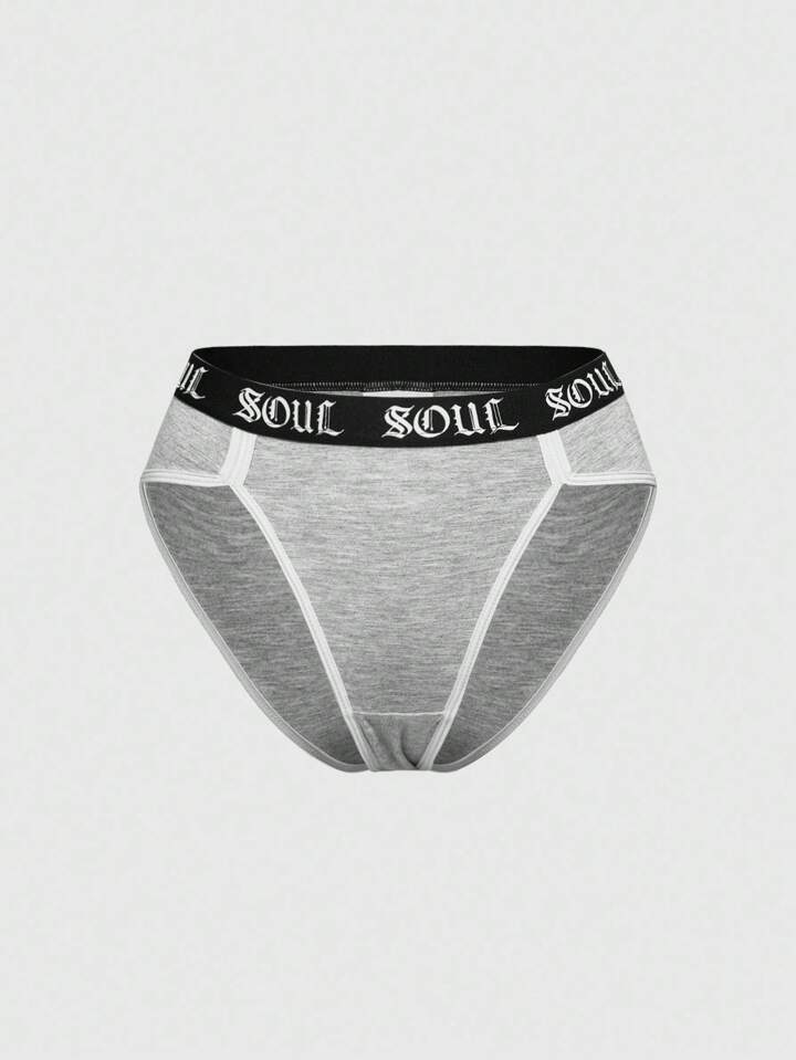 1pc Gothic Letter Contrast Trim Triangle Panty