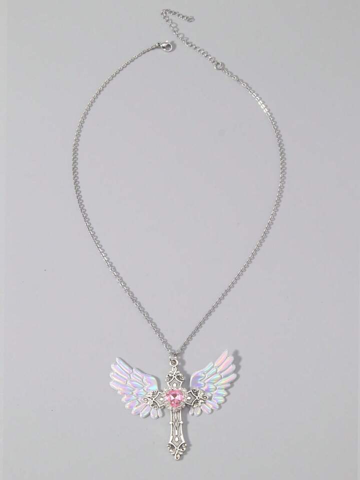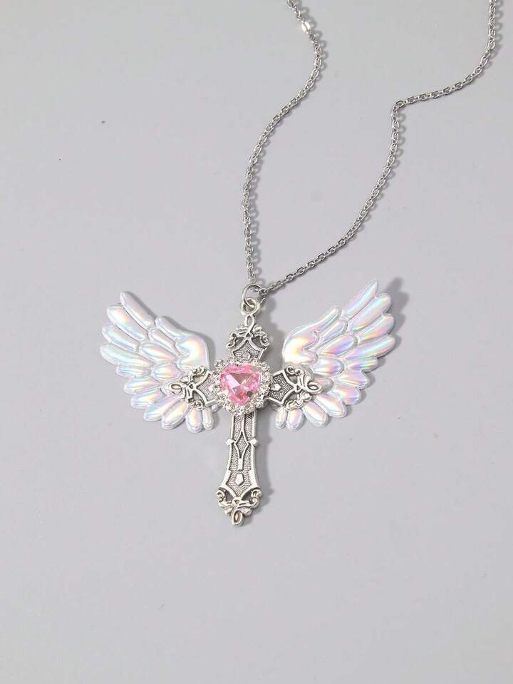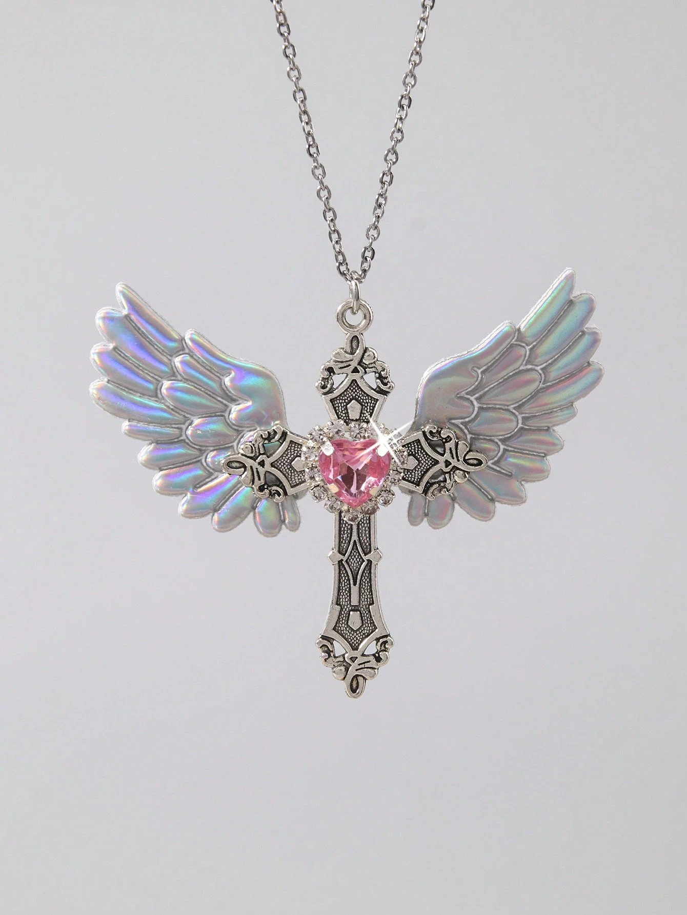 1pc Gothic Luxury Cross Pendant Necklace With Rhinestones, Holiday Party Gift, Halloween
