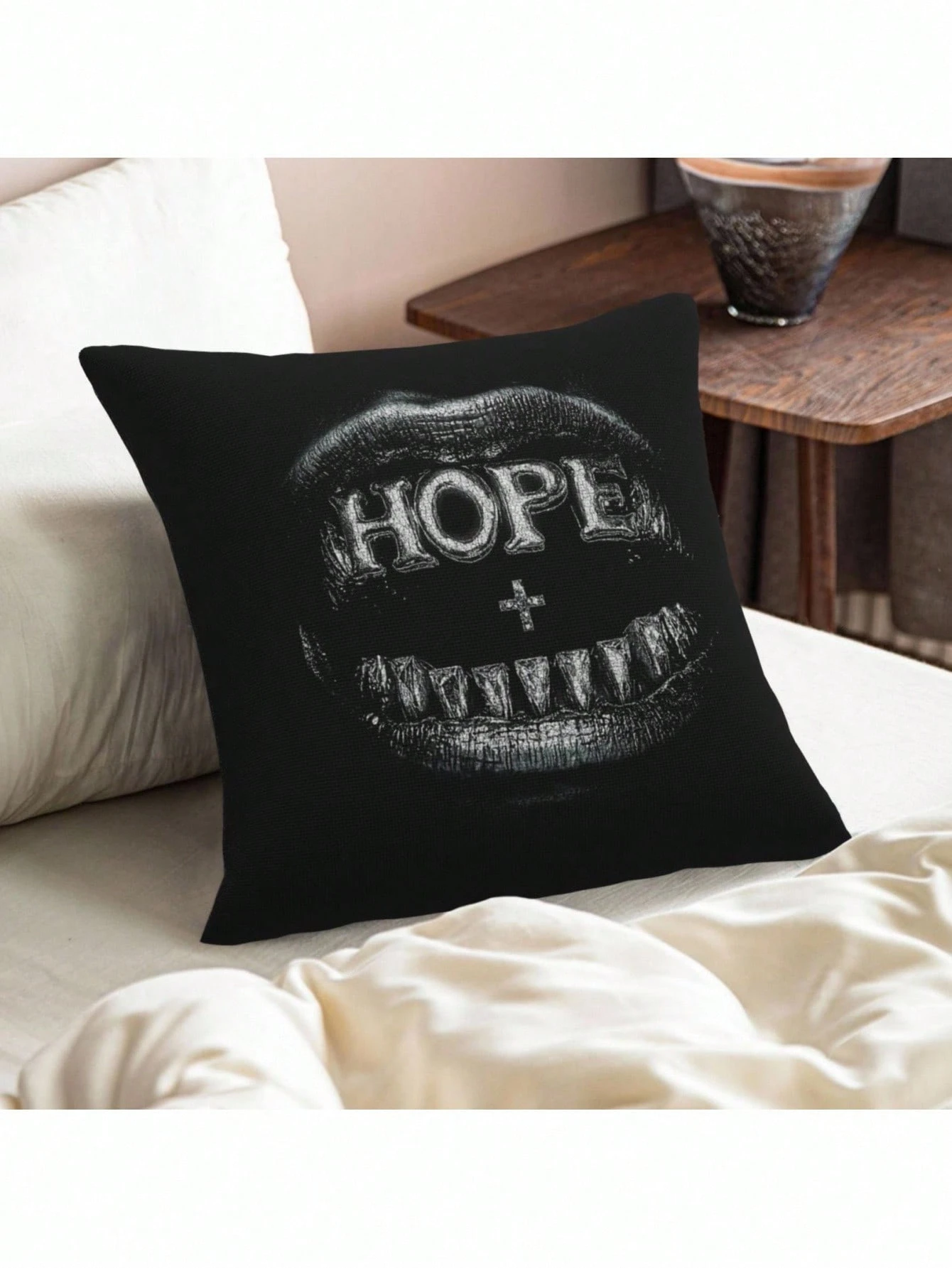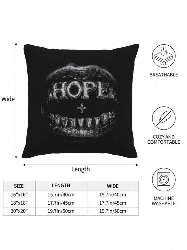 1pc Gothic Style Unique Black Throw Pillow With The "Hope" Lip Print Can Be Used For Home Decoration, Car Throw Pillows, And Mysterious Gifts,Home Decor