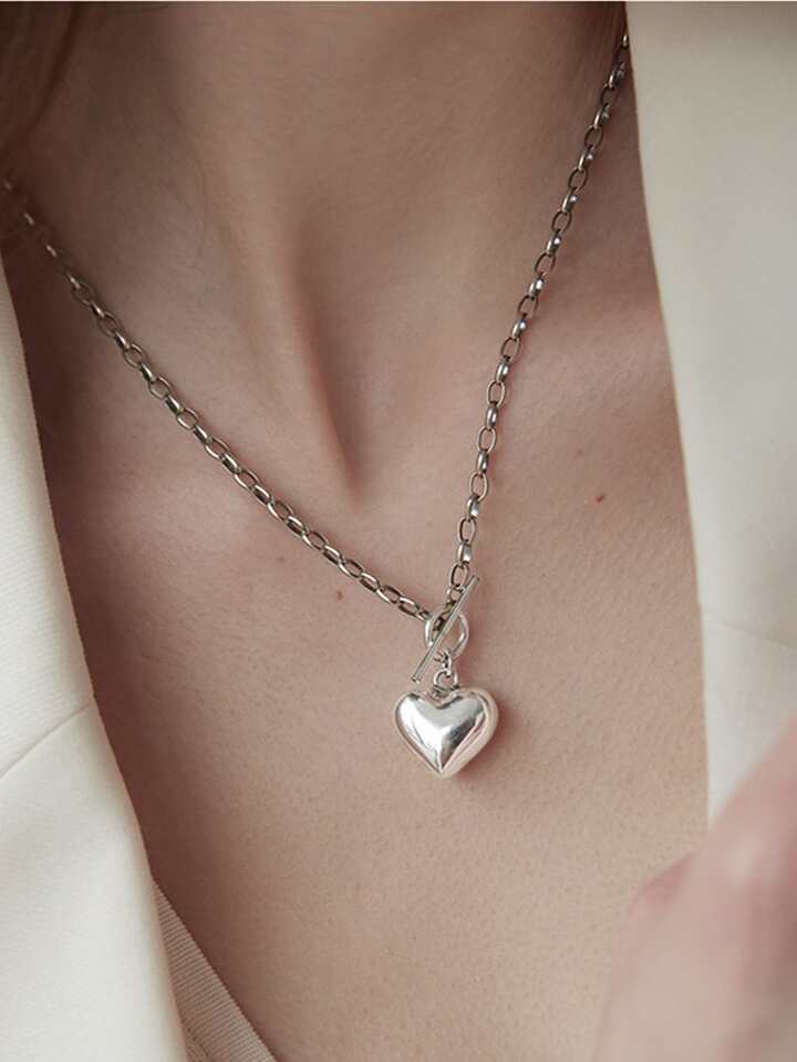 1pc Heart Pendant Toggle Clasp Necklace