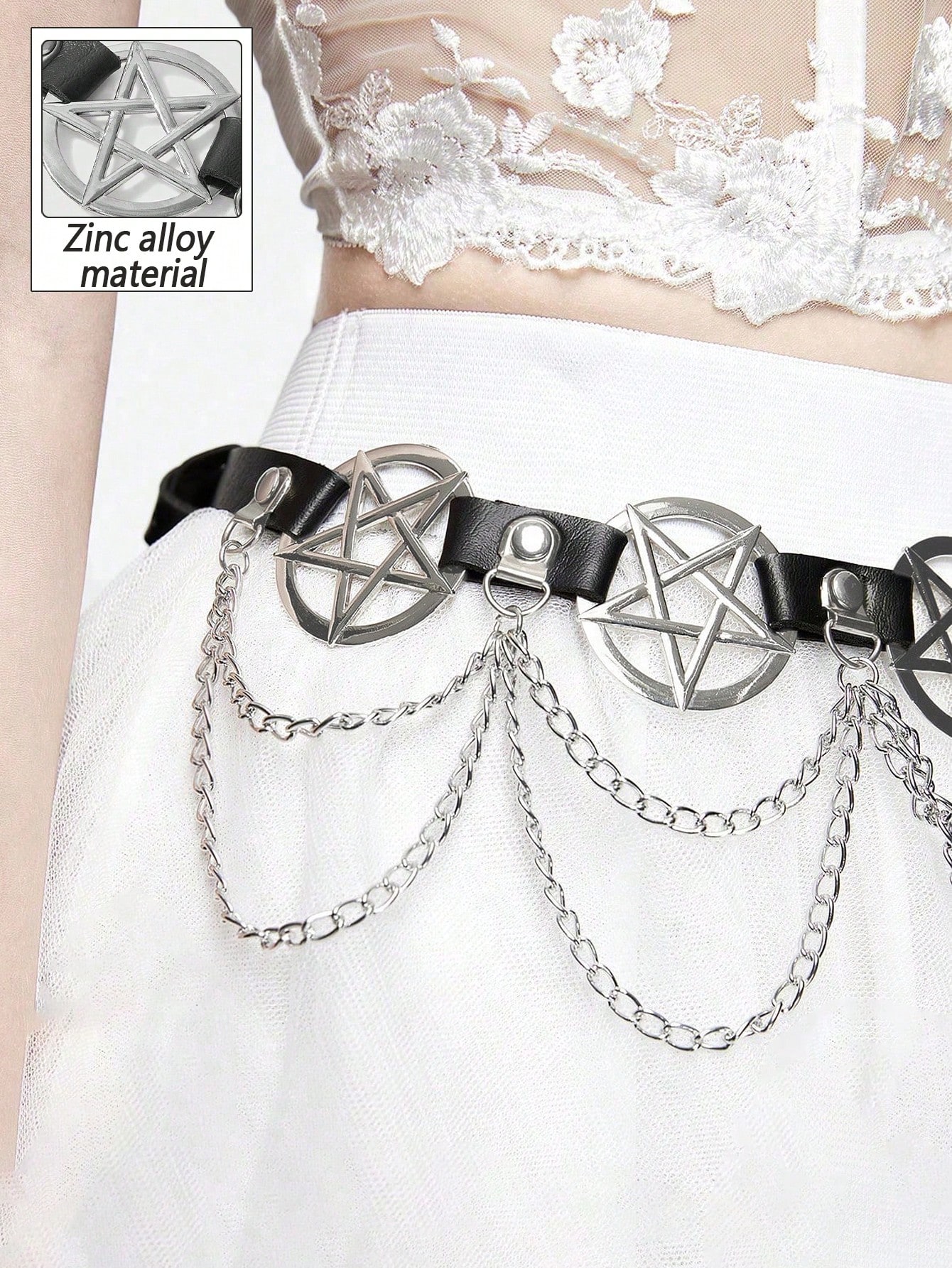 Goth 1pc Ladies' Black Hollow Out Five-Pointed Star Decorated Gothic Style Belt For Dress With Versatile Daily Use, Halloween