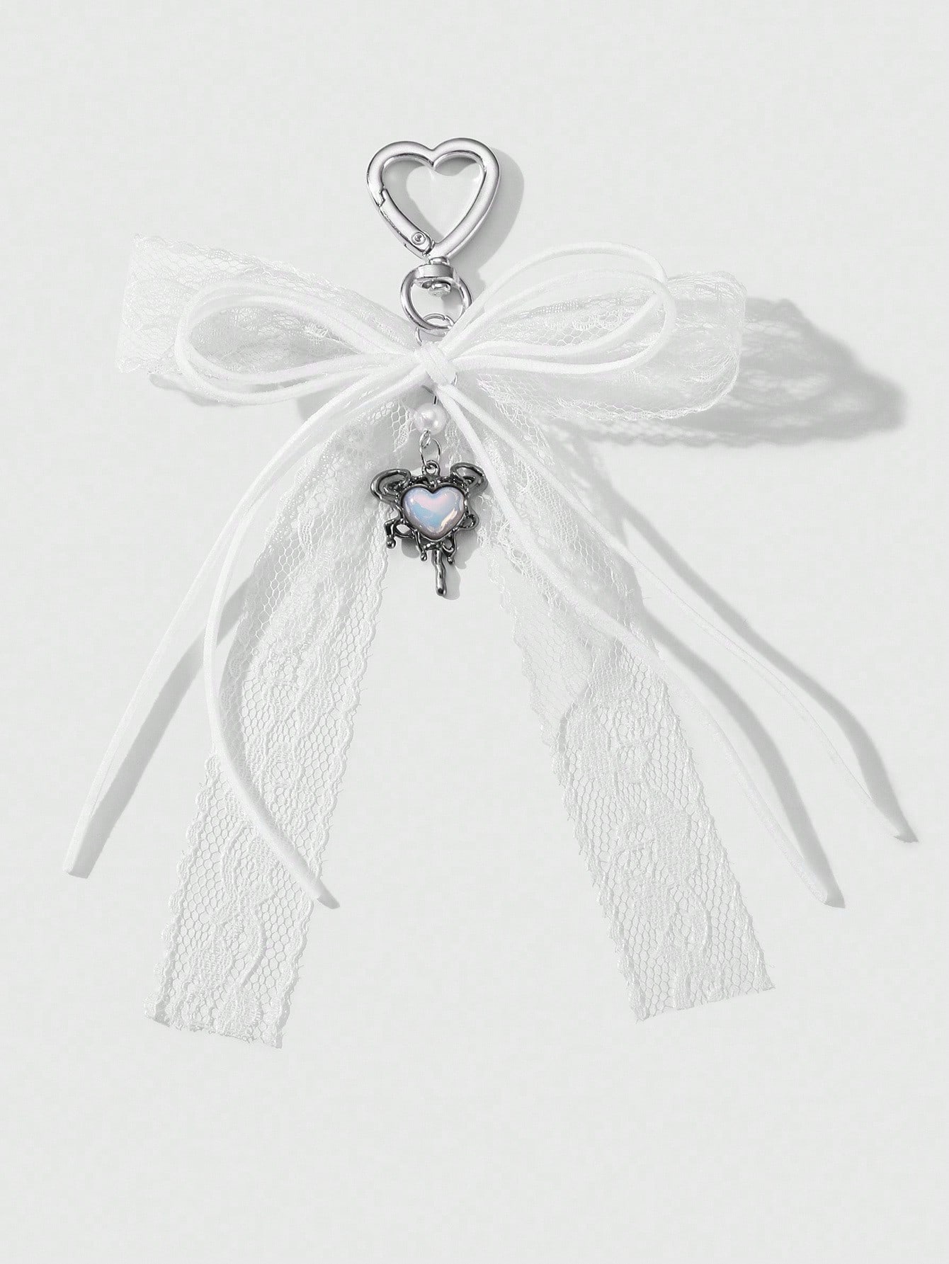 Kawaii 1pc Minimalist Retro Chic Versatile College Style White Velvet Rope Lace Bow Double Layer Liquid Resin Heart DIY Keychain Bag Charm, Suitable For Women, Daily Wear, Holiday Gift