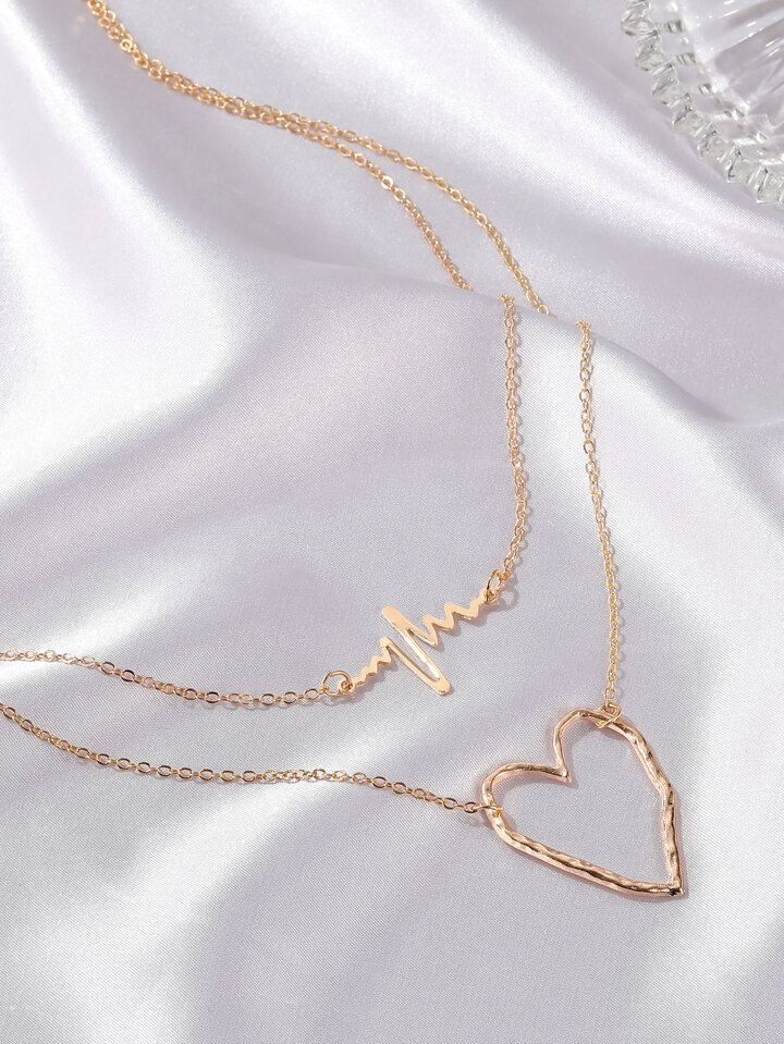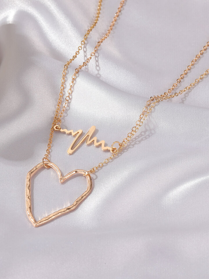 1pc Personalized Double Layers Heartbeat & Heart Pendant Necklace For Women