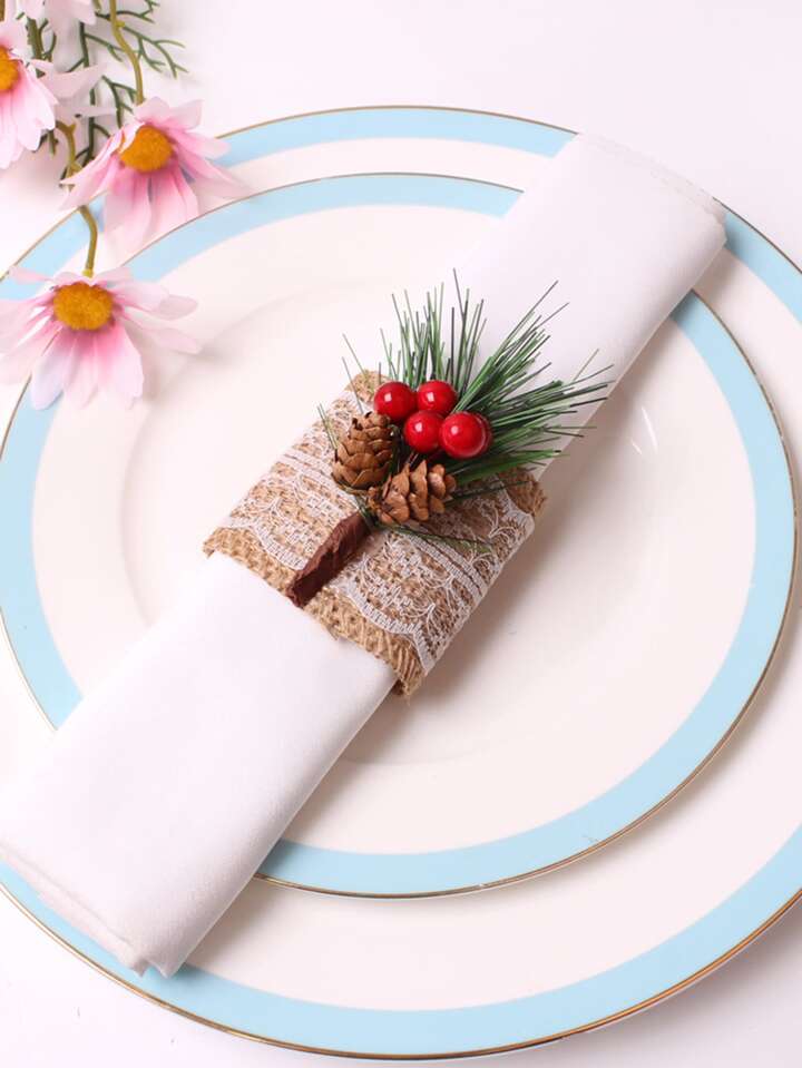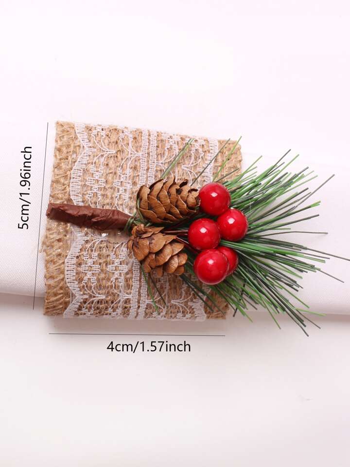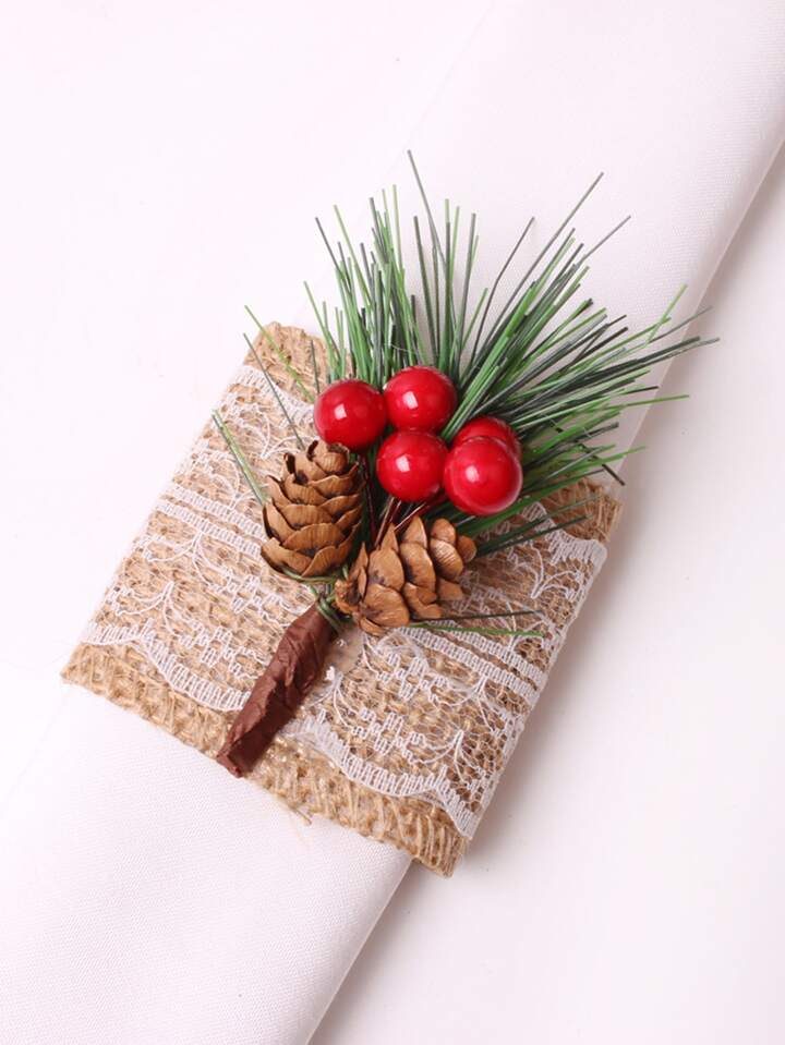 1pc Pine Cones & Artificial Plant Decor Napkin Ring