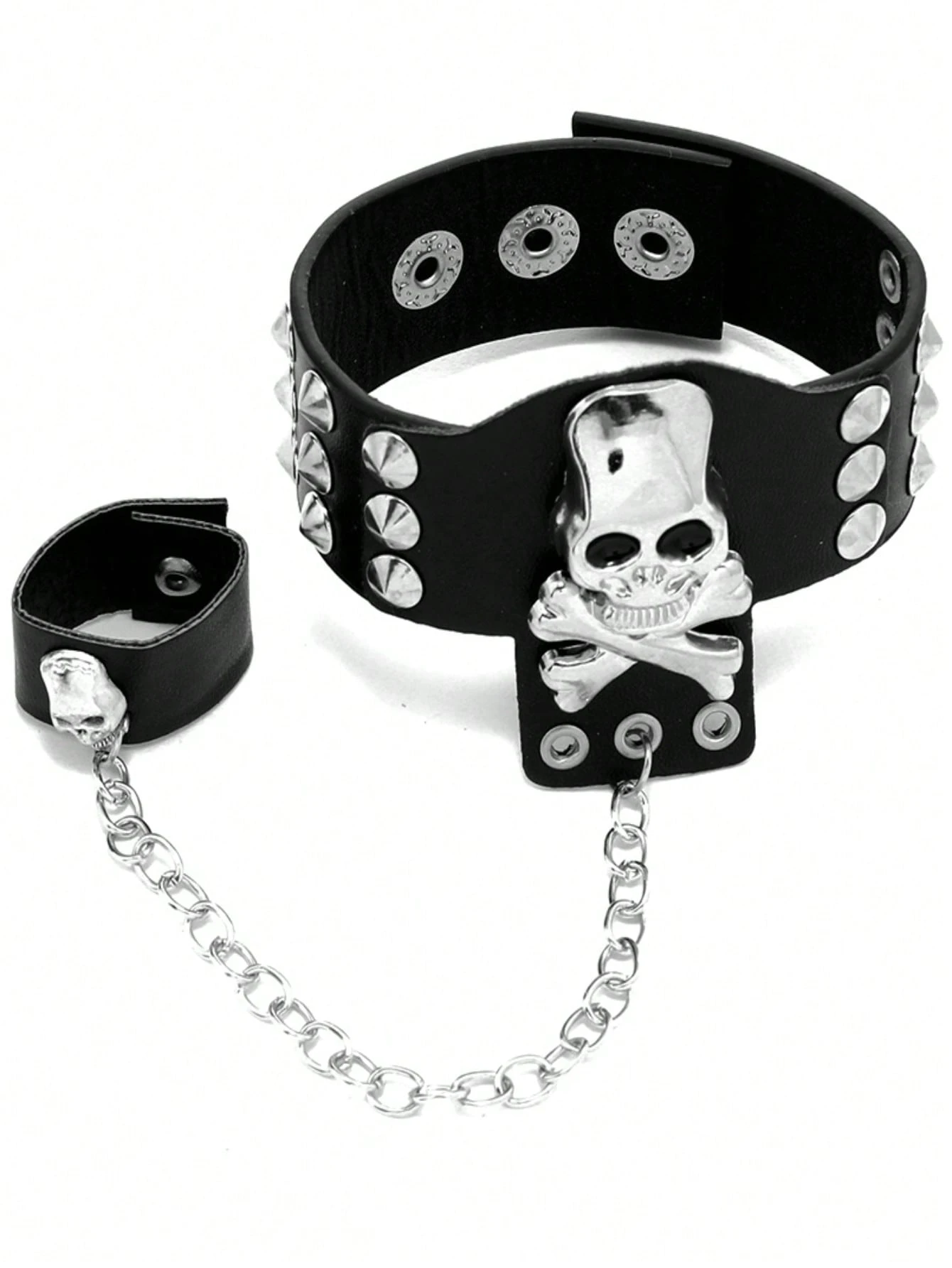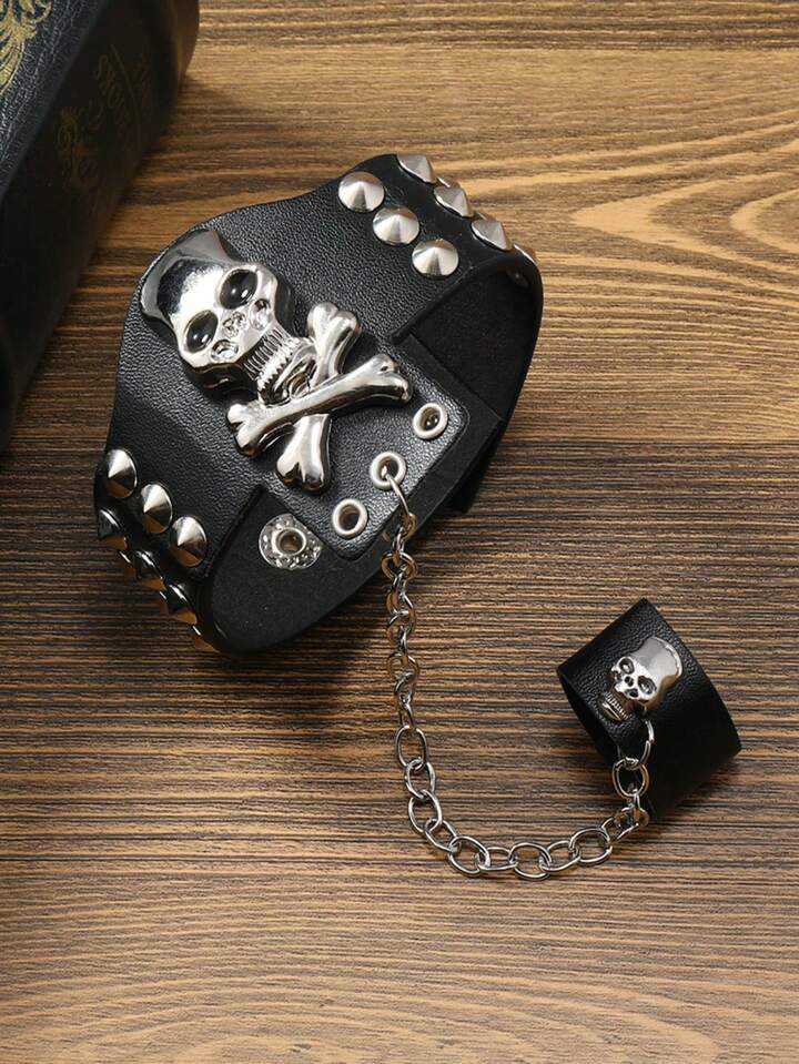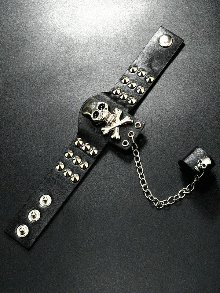 1pc Punk Gothic Style Skull Rivet Retro Leather Finger Bracelet For Women