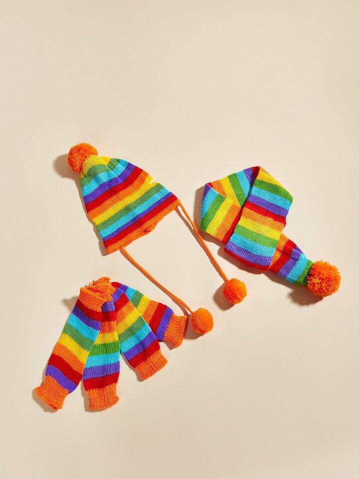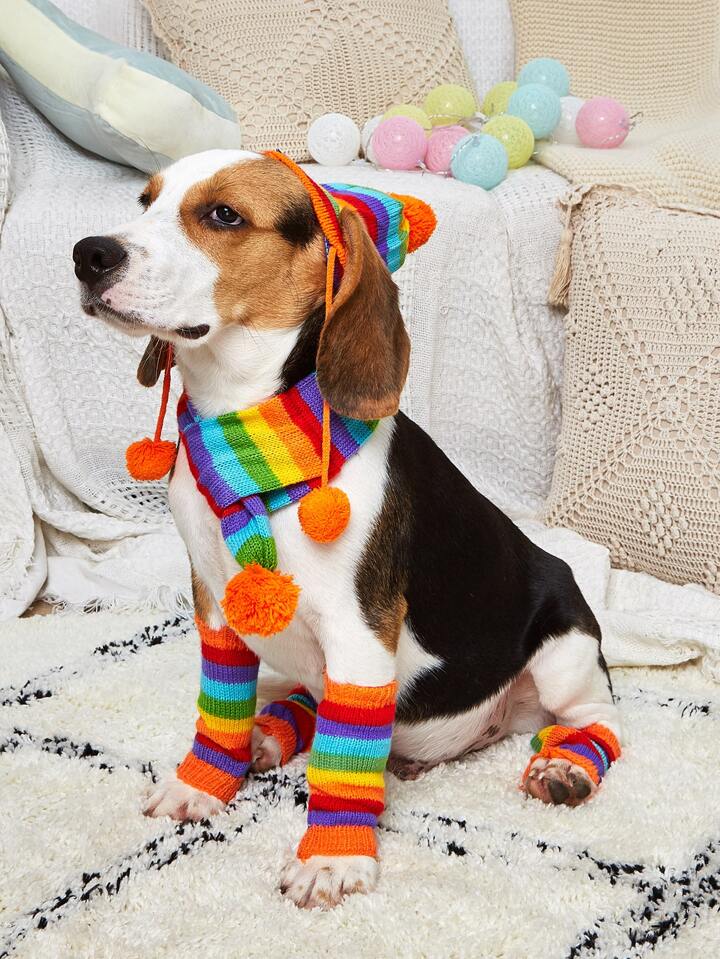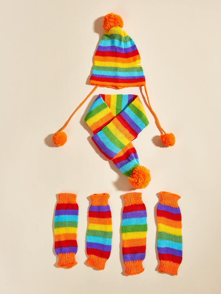 1pc Rainbow Striped Dog Hat & 1pc Dog Scarf & 4pcs Dog Leg Warmer