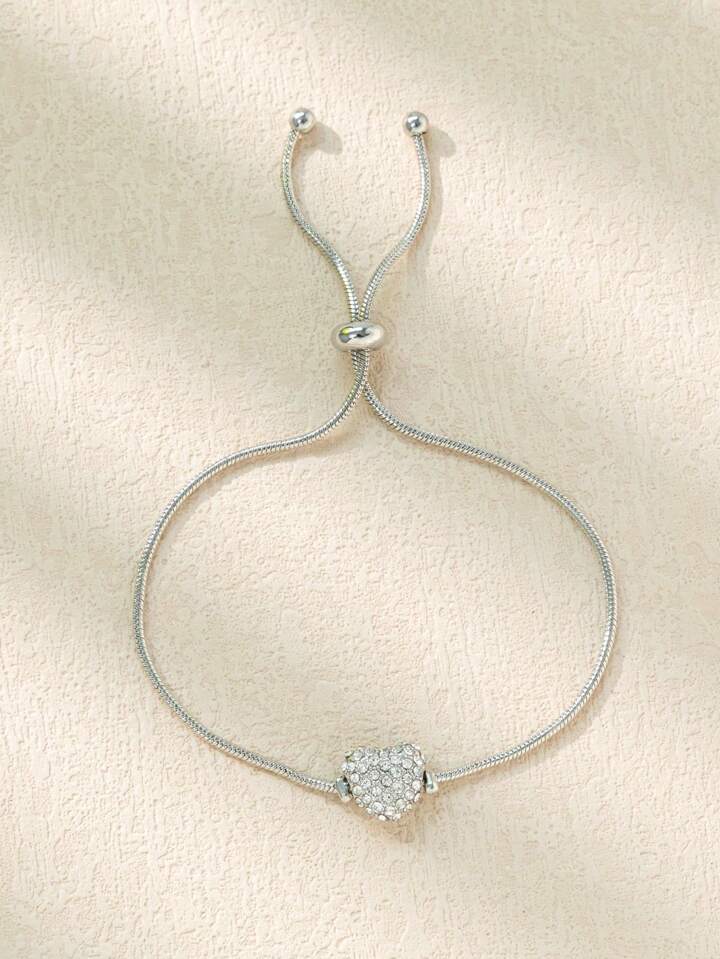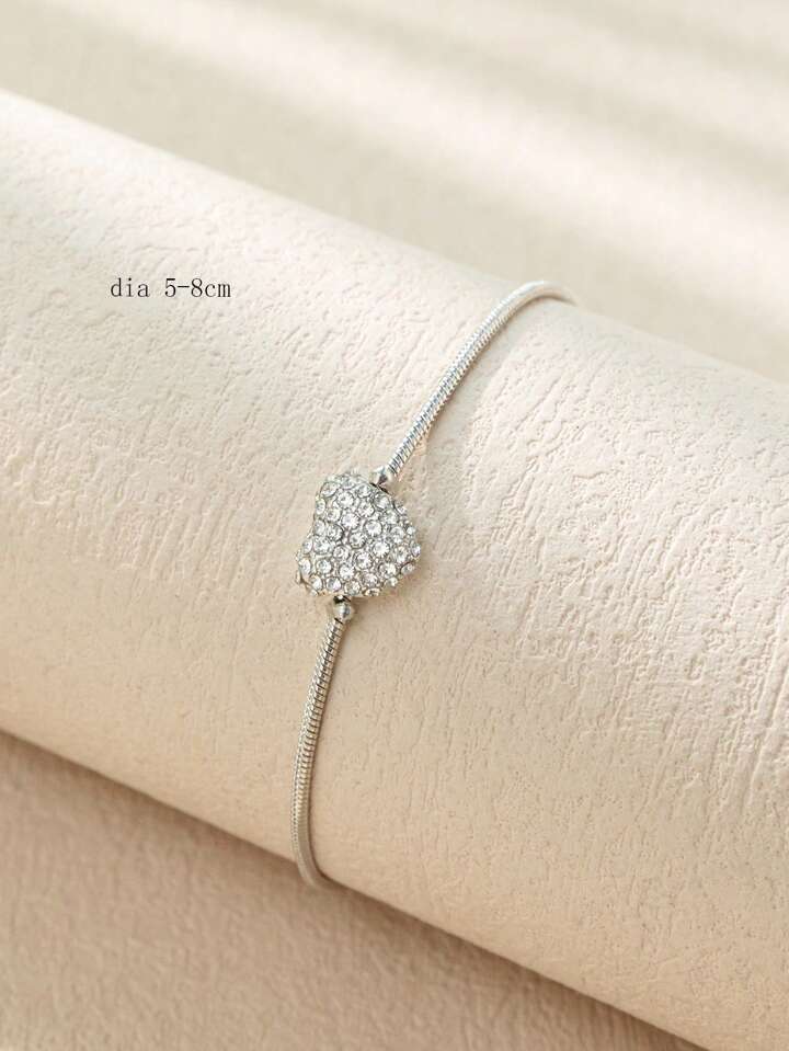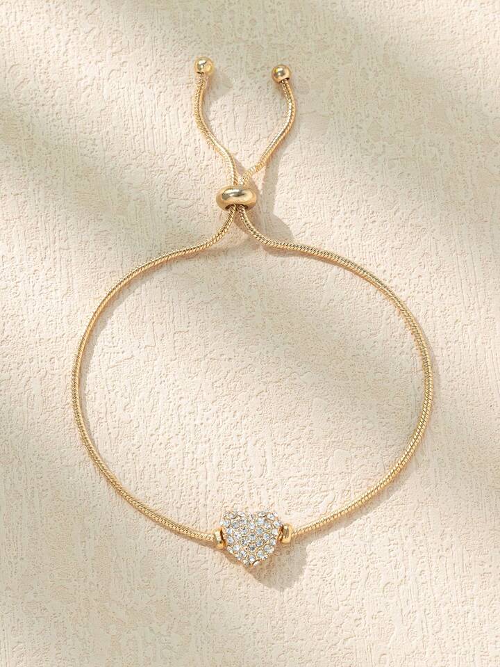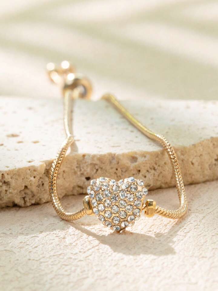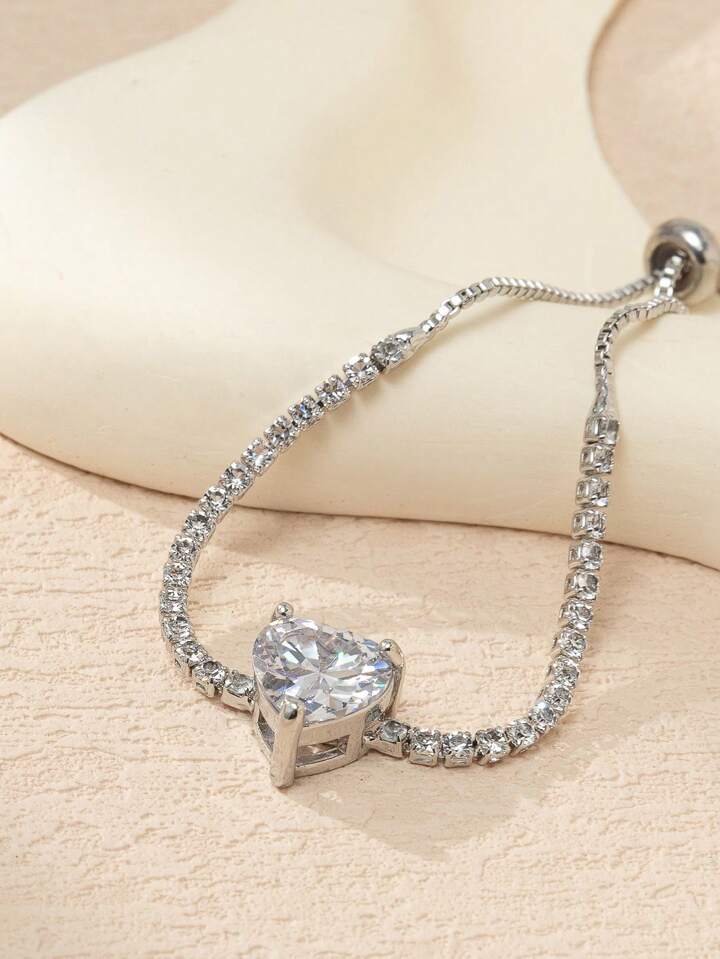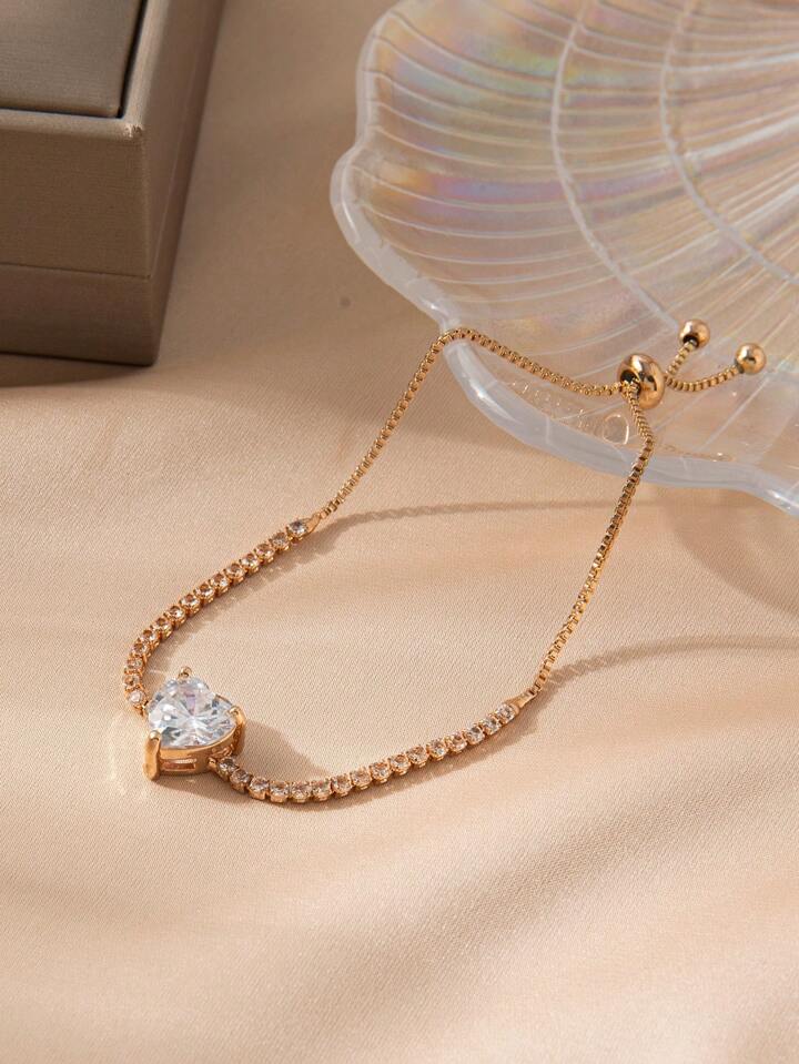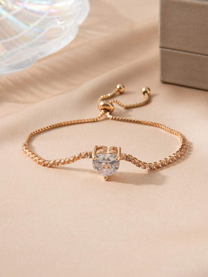 1pc Shiny Cubic Zirconia Heart-Shaped Bracelet, Gold/Silver Color Elegant Bracelet For Women
