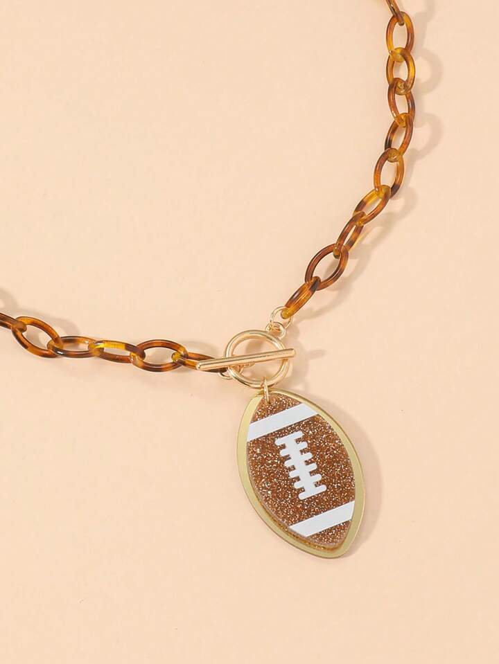 1pc Super Bowl Cartoon Acrylic Beaded Chain Necklace With Ot Clasp