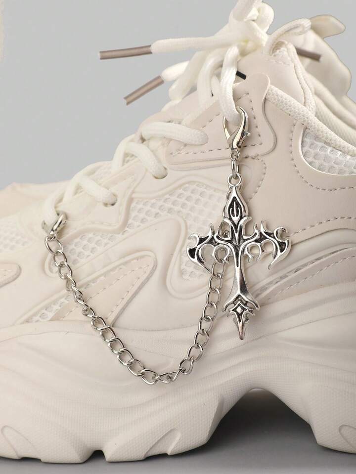 1pc Vintage Gothic Flame Cross Chain, Metal Heart Decor Chain, Crossbody Bag Strap Pendant, Suitable For Decorating Boots