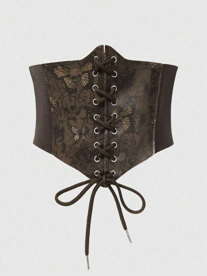 1pc Women Black Lace Chain Skull Cross Tie Decor Elastic Waistband Goth Dress Accessory For Halloween