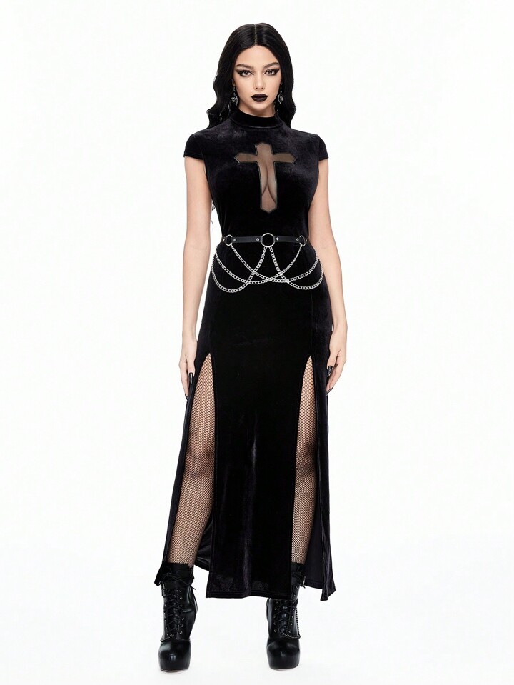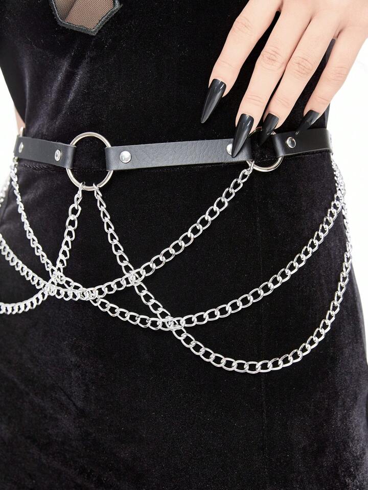 1pc Women Black Smooth 4 Chains Wrapped Dark Gothic Style Chain Belt Dress Accessory, Versatile
