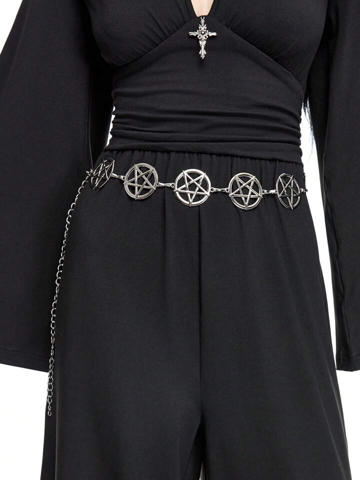 1pc Women's Black Hollow Five-Pointed Star Decor Waist Chain, Gothic Style Party Accessory, Versatile For Daily Wear, Halloween