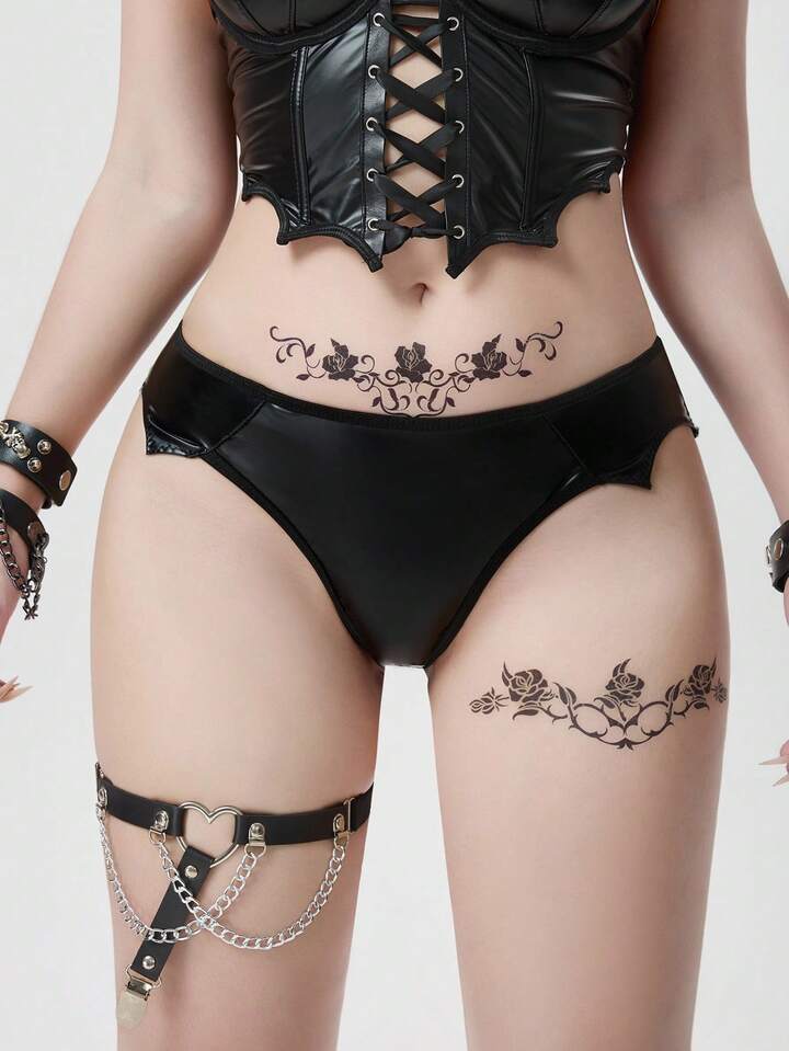 1pc Women's Gothic Bat Trim Thong Panty