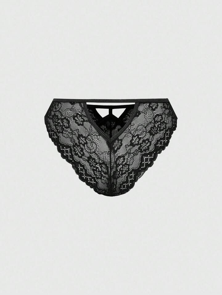 1pc Women's Lace Gothic Heart Decor Thong Panty