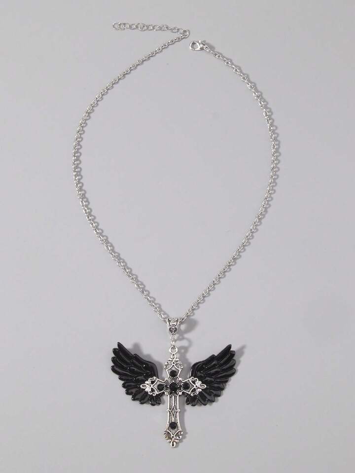 1pc Y2K Fashion Gothic Angel Wings Cross Necklace, Perfect For Daily Wear, Halloween