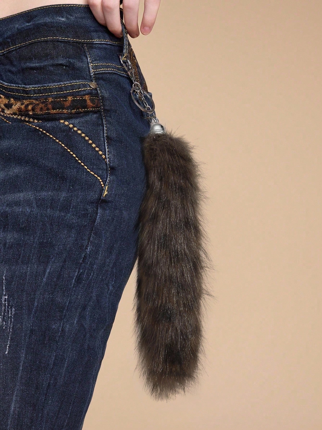 Grunge Punk 1pc Y2K Retro Chic High-Quality Brown Faux Fur Leopard Polka Dot Wavy Fox Fur Plush Animal Tail DIY Keychain Bag Charm, Suitable For Women, Daily Wear, Holiday Gift